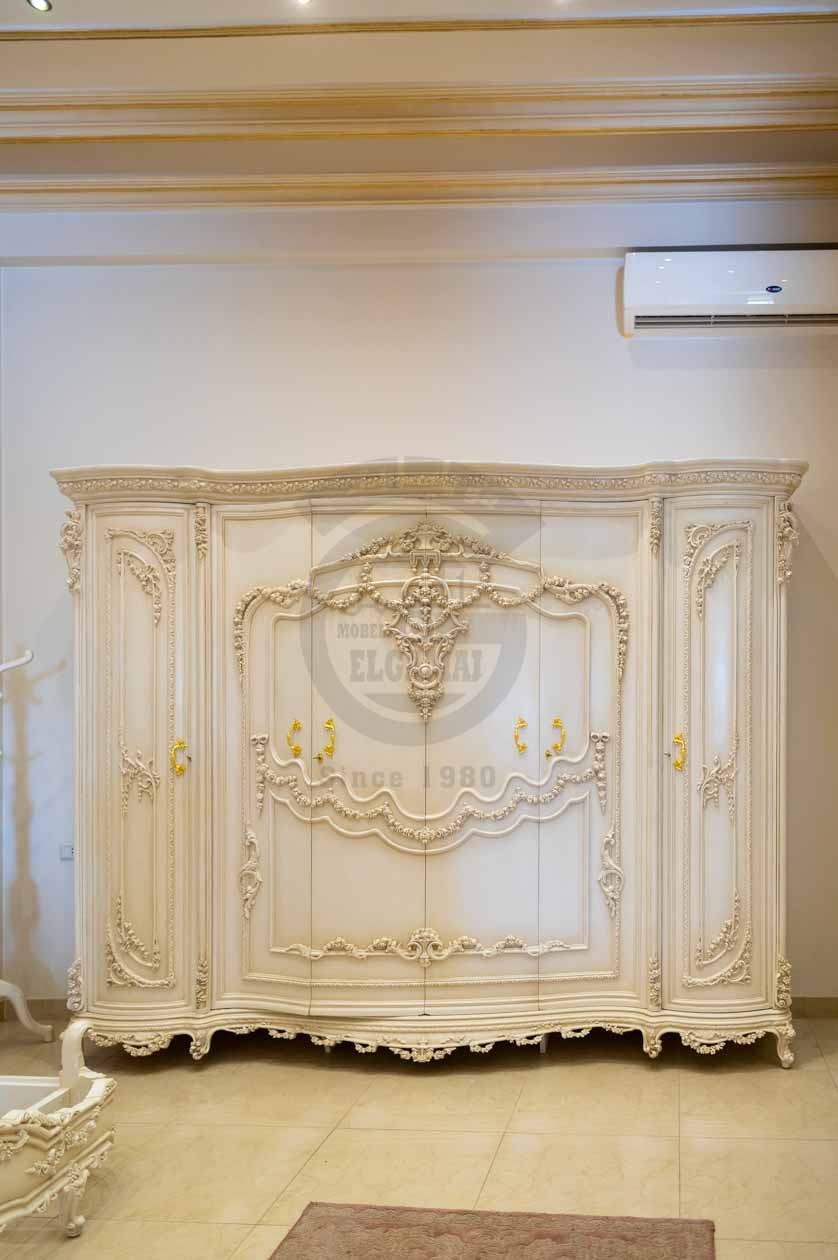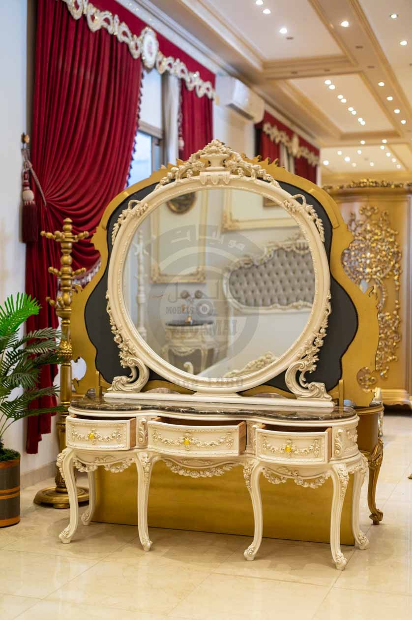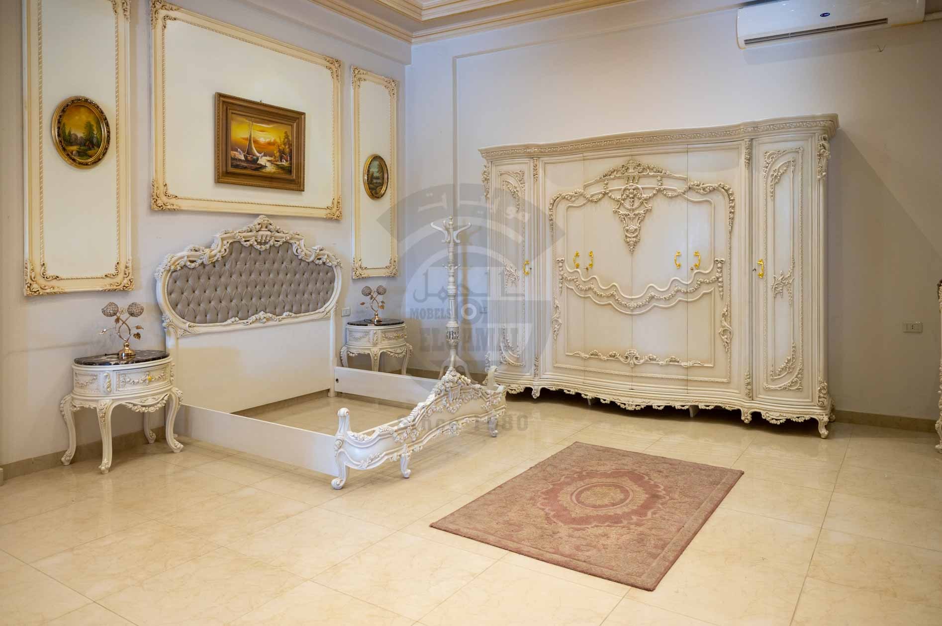 غرفة نوم كلاسيك أنيقة تجمع بين الفخامة والتفاصيل الراقية، تضم سرير بتصميم فاخر بظهر مبطن وزخارف مميزة يضفي لمسة ملكية على الأجواء. تأتي الغرفة مع دولاب كبير مزخرف يوفر سعة تخزين عملية مع لمسة جمالية فريدة. كما تحتوي على عدد 2 كومود أنيقين بجانب السرير لإضافة عملية وجذابة. الغرفة مجهزة أيضًا بـ شماعة ملابس كلاسيكية، وتسريحة أنيقة تكمل التصميم الراقي، بالإضافة إلى وحدة تخزين عملية تضيف لمسة من التنظيم. تصميم الغرفة يجمع بين الجمال الكلاسيكي والوظائف العملية لتوفير تجربة راحة متكاملة.