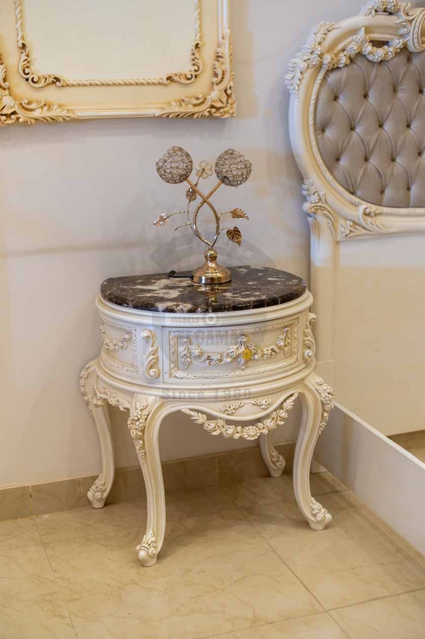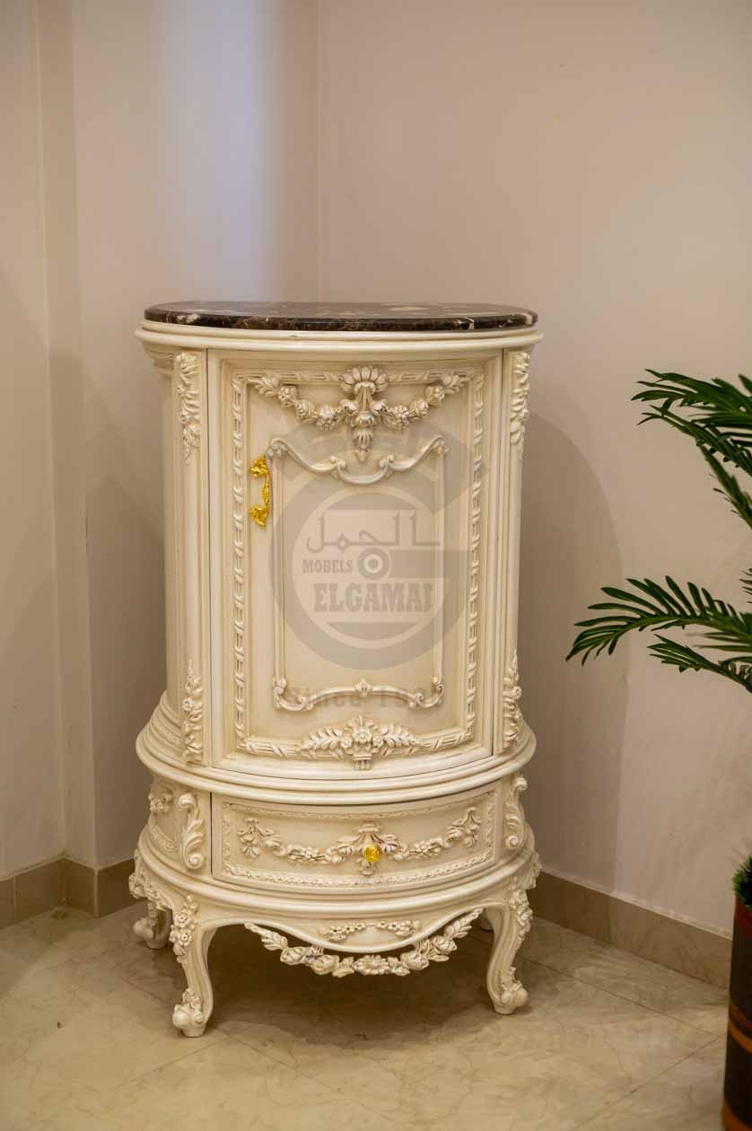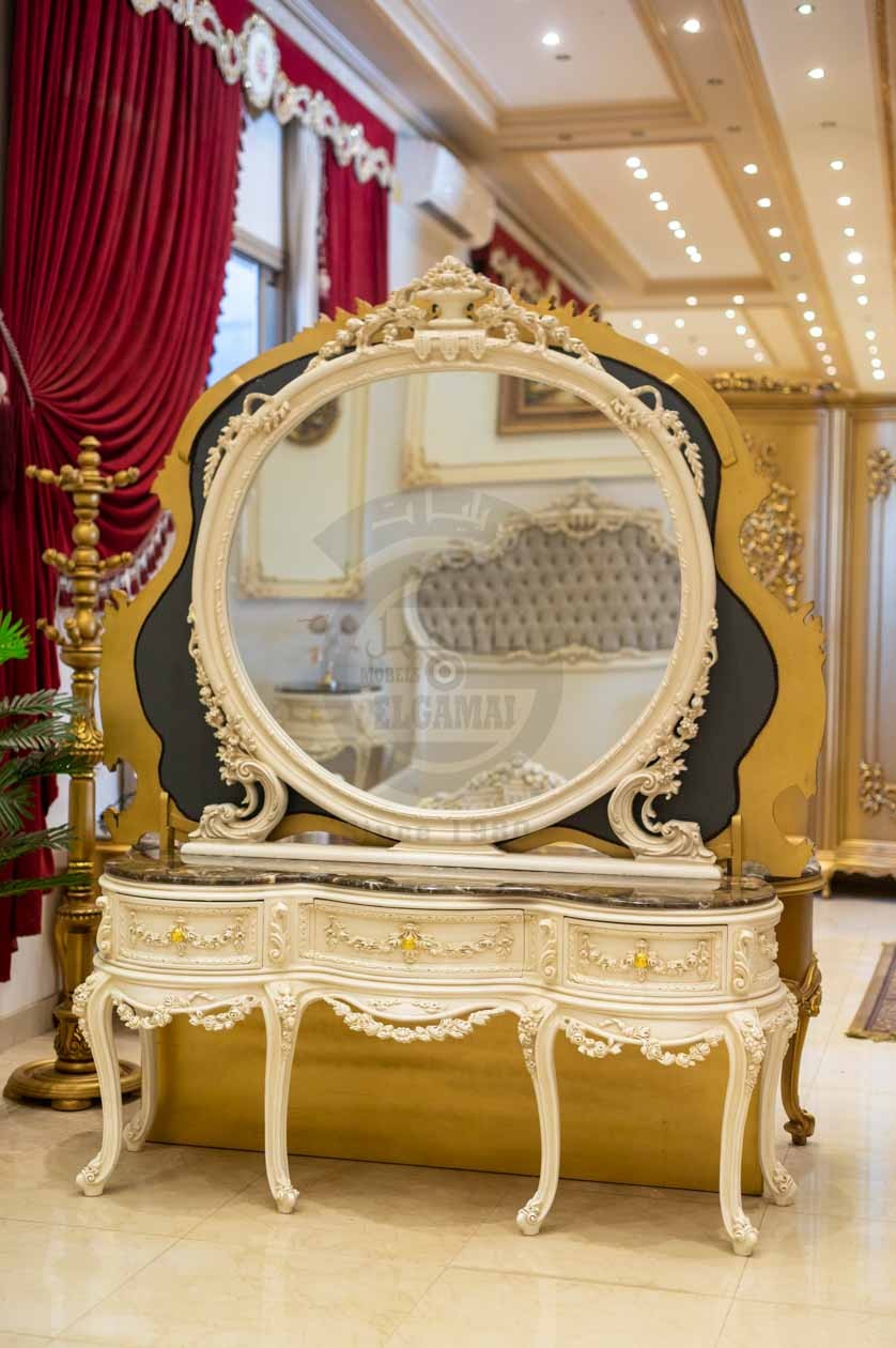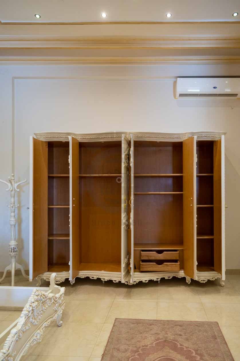 غرفة نوم كلاسيك أنيقة تجمع بين الفخامة والتفاصيل الراقية، تضم سرير بتصميم فاخر بظهر مبطن وزخارف مميزة يضفي لمسة ملكية على الأجواء. تأتي الغرفة مع دولاب كبير مزخرف يوفر سعة تخزين عملية مع لمسة جمالية فريدة. كما تحتوي على عدد 2 كومود أنيقين بجانب السرير لإضافة عملية وجذابة. الغرفة مجهزة أيضًا بـ شماعة ملابس كلاسيكية، وتسريحة أنيقة تكمل التصميم الراقي، بالإضافة إلى وحدة تخزين عملية تضيف لمسة من التنظيم. تصميم الغرفة يجمع بين الجمال الكلاسيكي والوظائف العملية لتوفير تجربة راحة متكاملة.