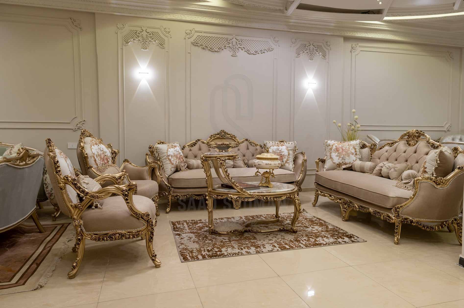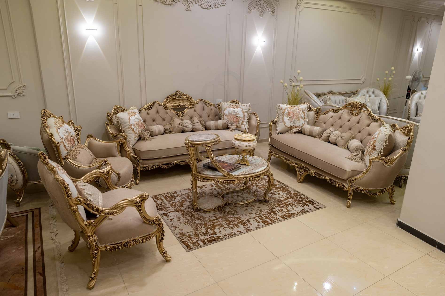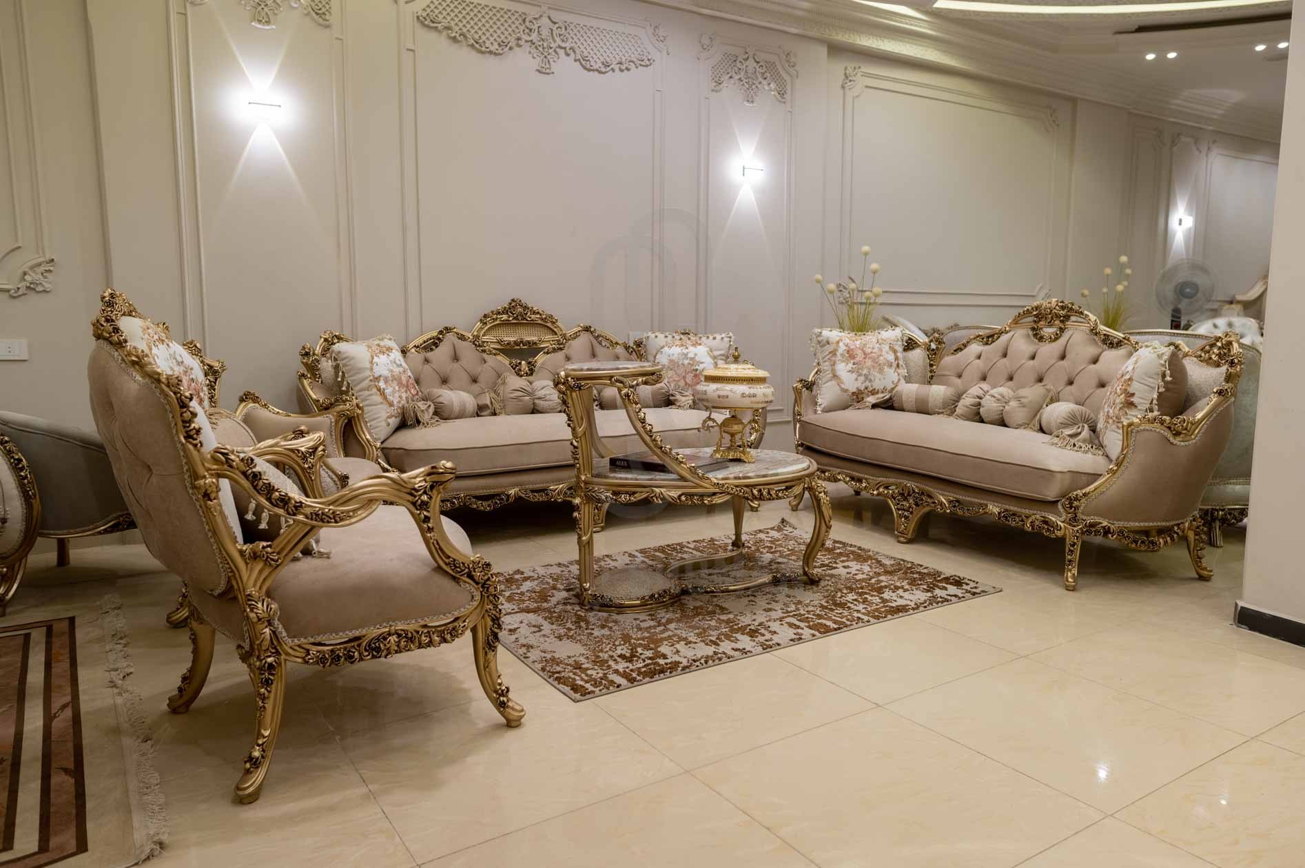 صالون كلاسيك فاخر بتصميم ملكي يجمع بين الفخامة والرقي. يتكون الطقم من كنبة ثلاثية فسيحة وكنبة ثنائية أنيقة، بالإضافة إلى عدد 2 فوتيه مريح بتنجيد عالي الجودة، وعدد 2 شيفيز بتصميم كلاسيكي فاخر، مع ترابيزة قهوة أنيقة تكمل الطقم.