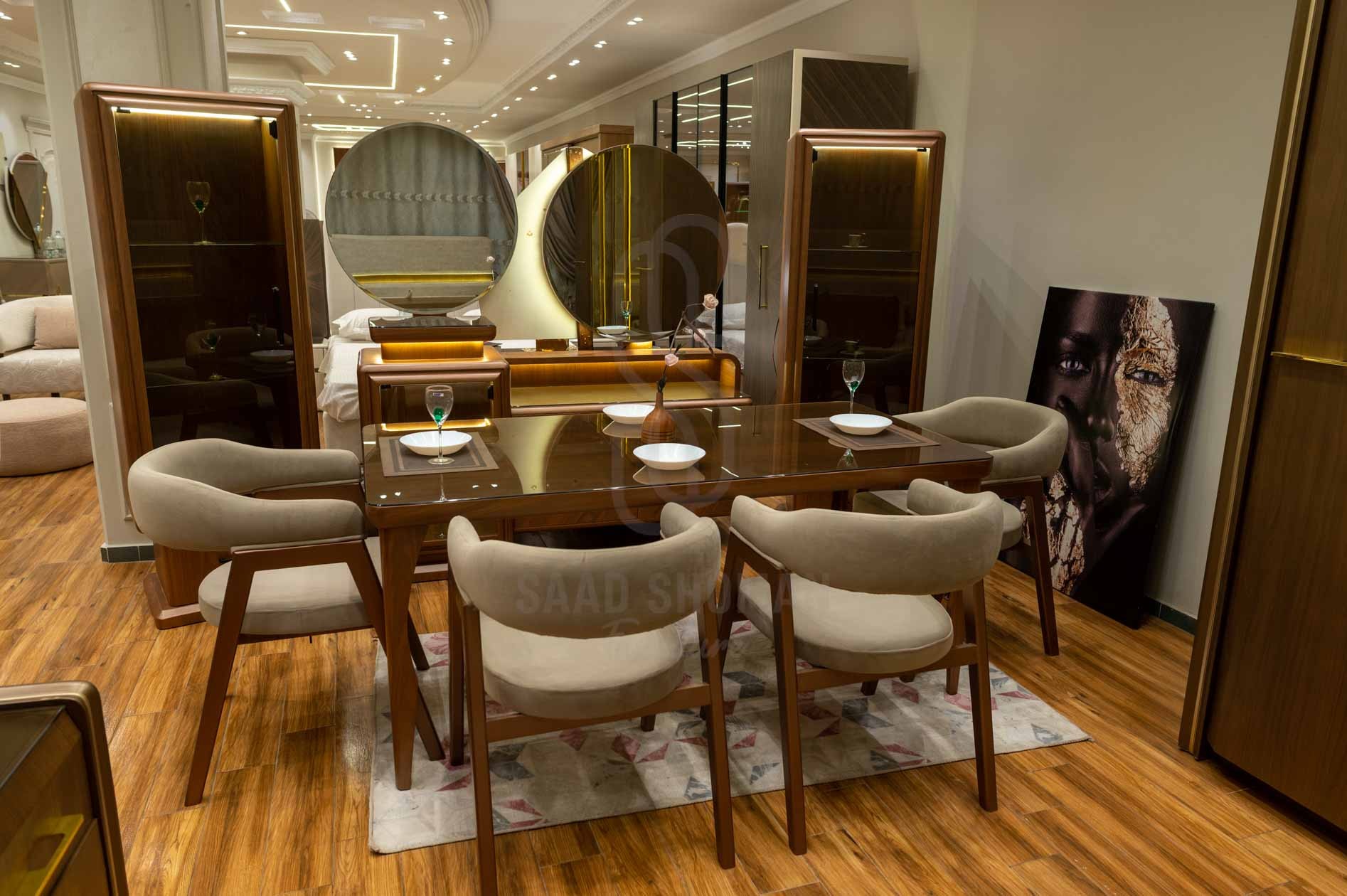 غرفة طعام متناسقة وعصرية تجمع بين الراحة، الأناقة، وسهولة الاستخدام اليومي.