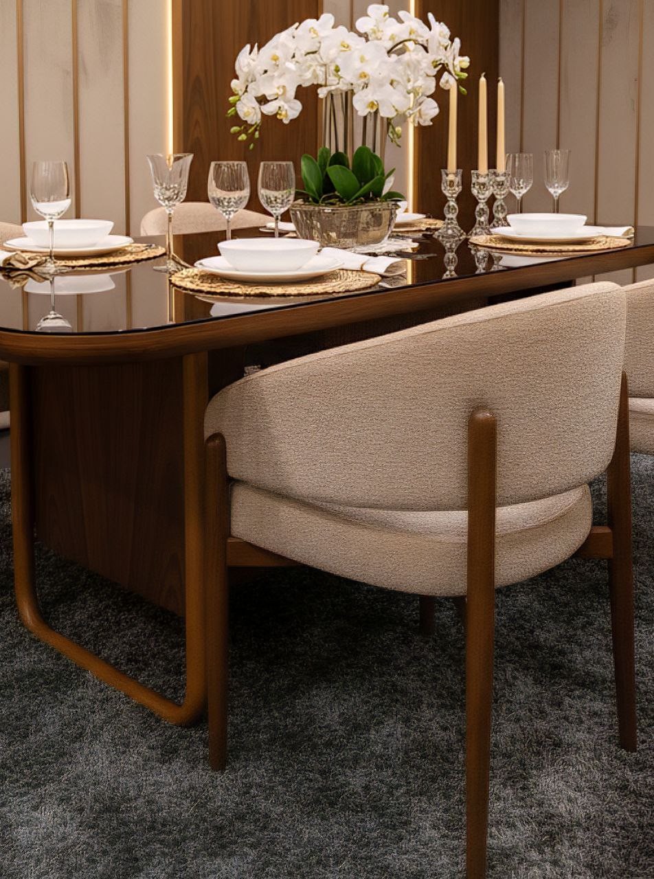 الكراسي مُغلفة بـ قماش بوكليه عالي الجودة يمنح ملمسًا ناعمًا ولمسة أنيقة تكمل روعة التصميم.