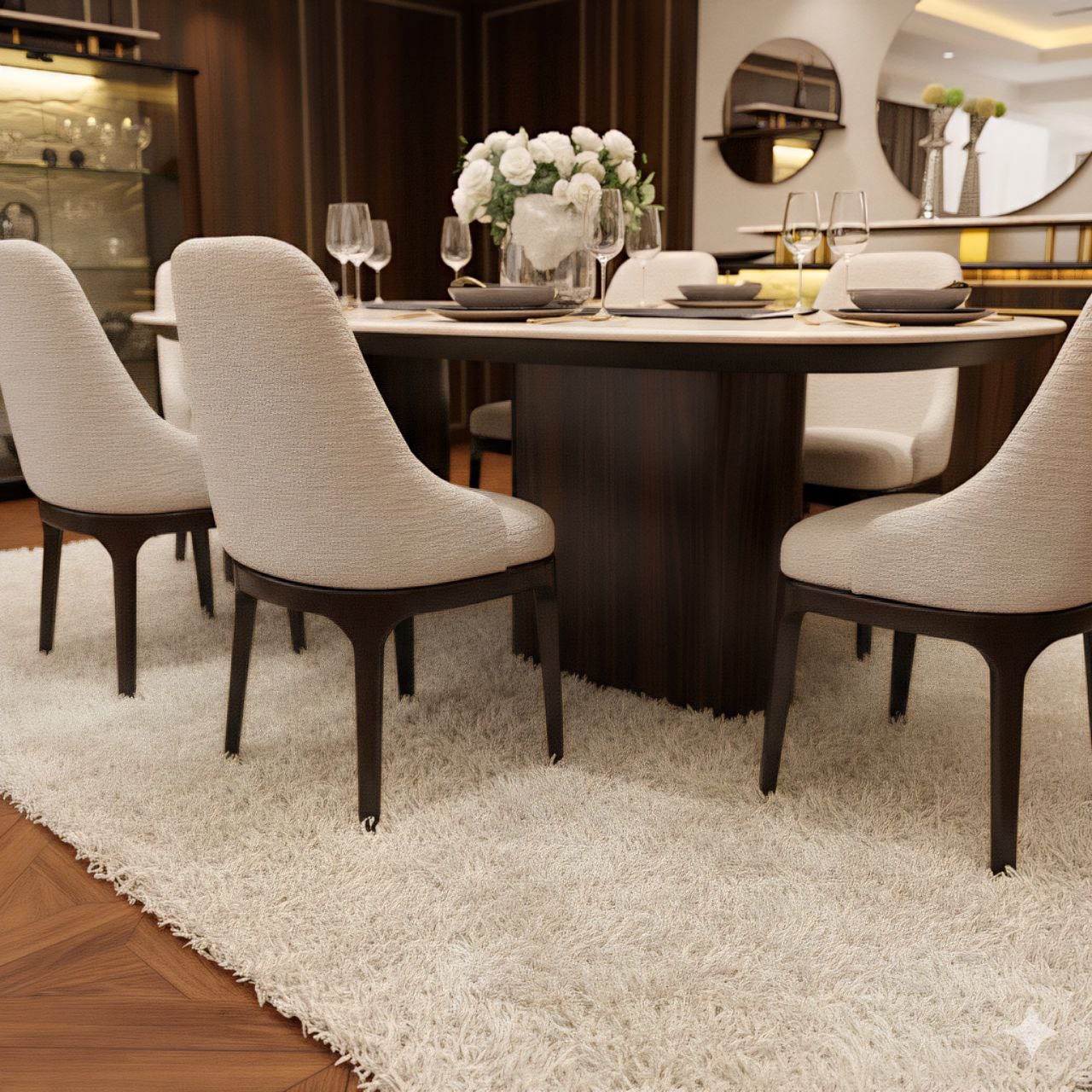 استمتع بأجواء فخمة في كل وجبة مع غرفة الطعام المودرن المكونة من ترابيزة طعام أنيقة مع 6 كراسي مريحة، بوفيه ونيش بتصميم عصري.
