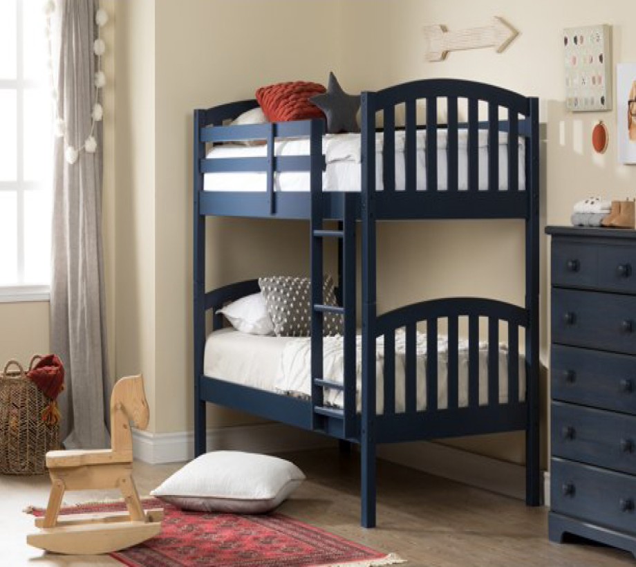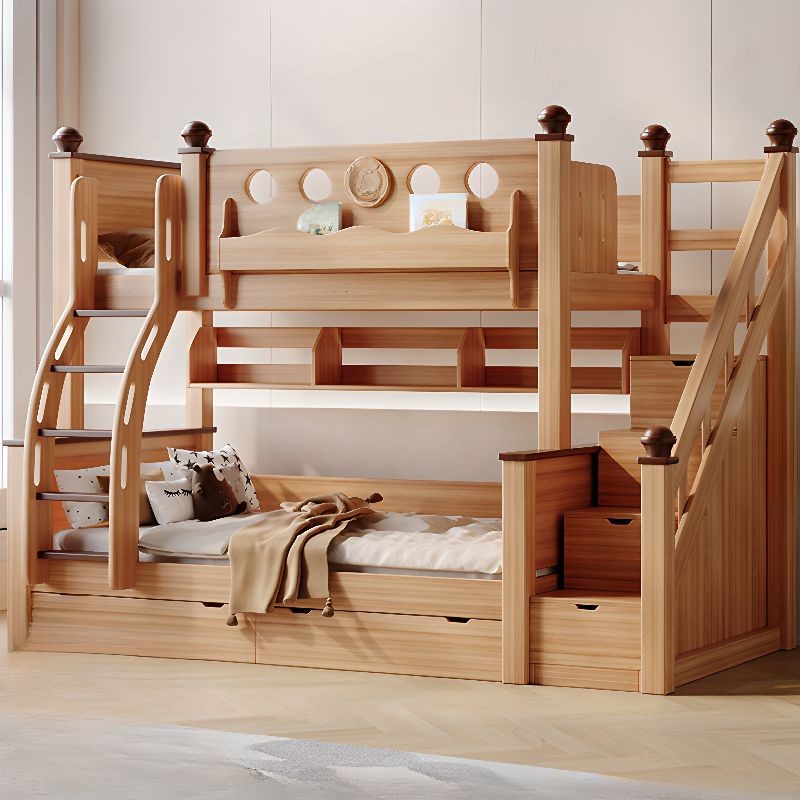 سرير خشبي بطابقين مع سلم