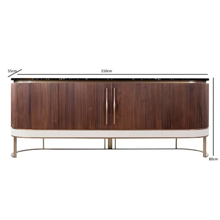 بوفيه بتصميم فريد يجمع بين الأناقة والعملية، يتميز بتناسق ألوانه بين البني والأبيض والذهبي مع لمسة رخامية فاخرة باللون الأسود، ليضفي لمسة راقية على أي مساحة داخلية. يوفر مساحة تخزين واسعة وعملية لتلبية احتياجات الاستخدام اليومي، مع جودة ومتانة عالية تضمن الاستدامة. قطعة مثالية لإضافة طابع عصري فاخر إلى ديكور منزلك.
