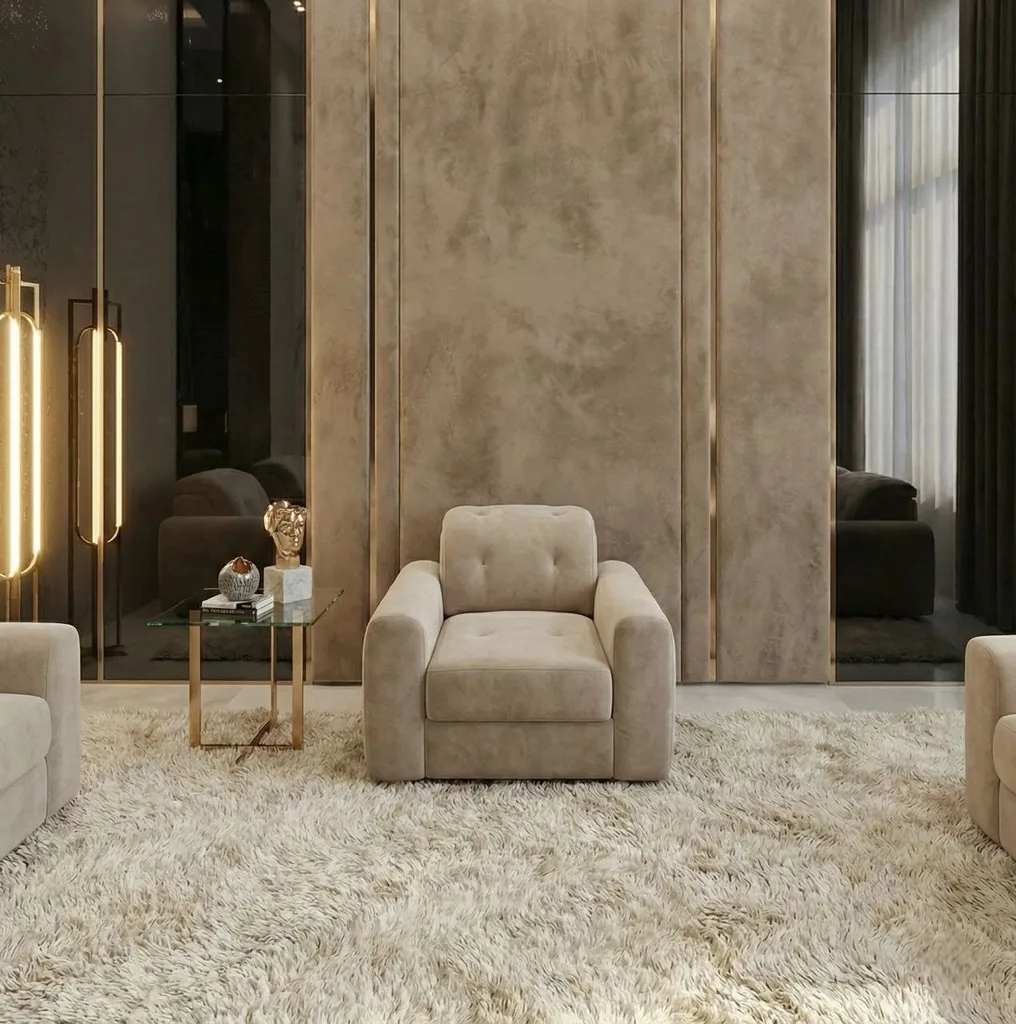 Upgrade your living space with a luxurious modern sofa set featuring a large convertible sofa, a separate armchair, and an elegant side table. Crafted from 100% natural wood for lasting durability, with high-quality treated fabric offering exceptional comfort and longevity.
