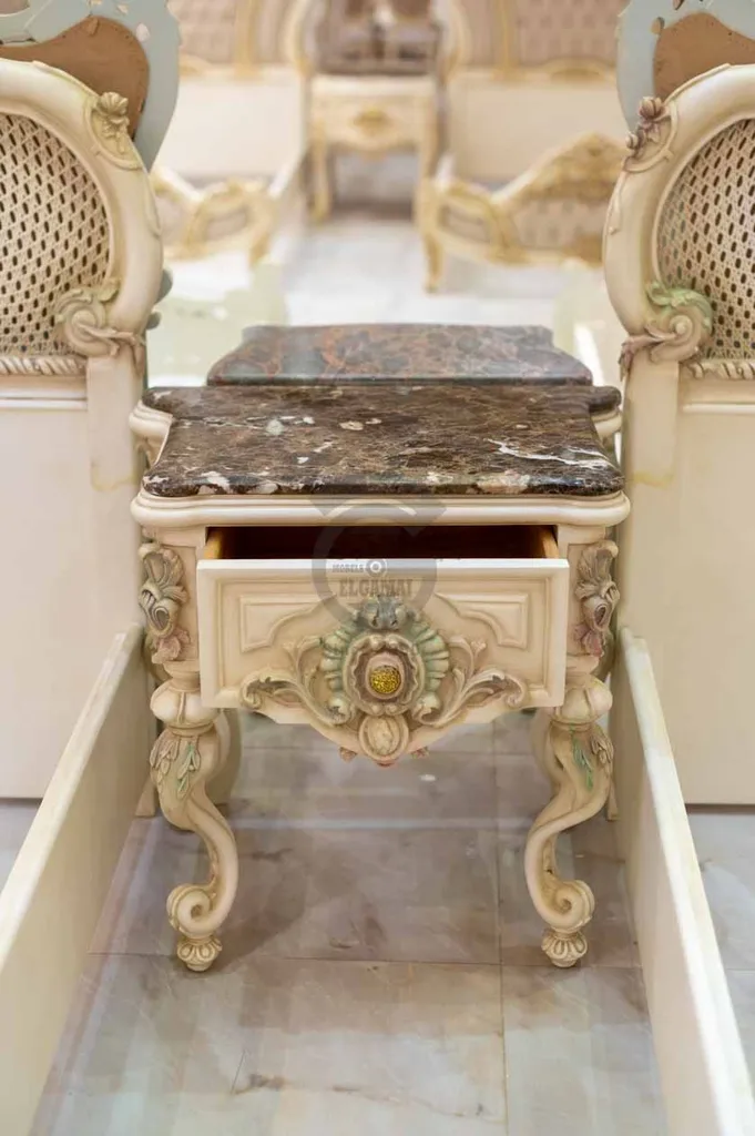 امنح غرفة أولادك أو شبابك لمسة فخامة مع غرفة نوم كلاسيكية متكاملة مصنوعة من الخشب الطبيعي وبتصميم فاخر باللون البيج. تتميز الغرفة بنقوش وزخارف منحوتة تضيف طابعًا كلاسيكيًا أنيقًا دون مبالغة.