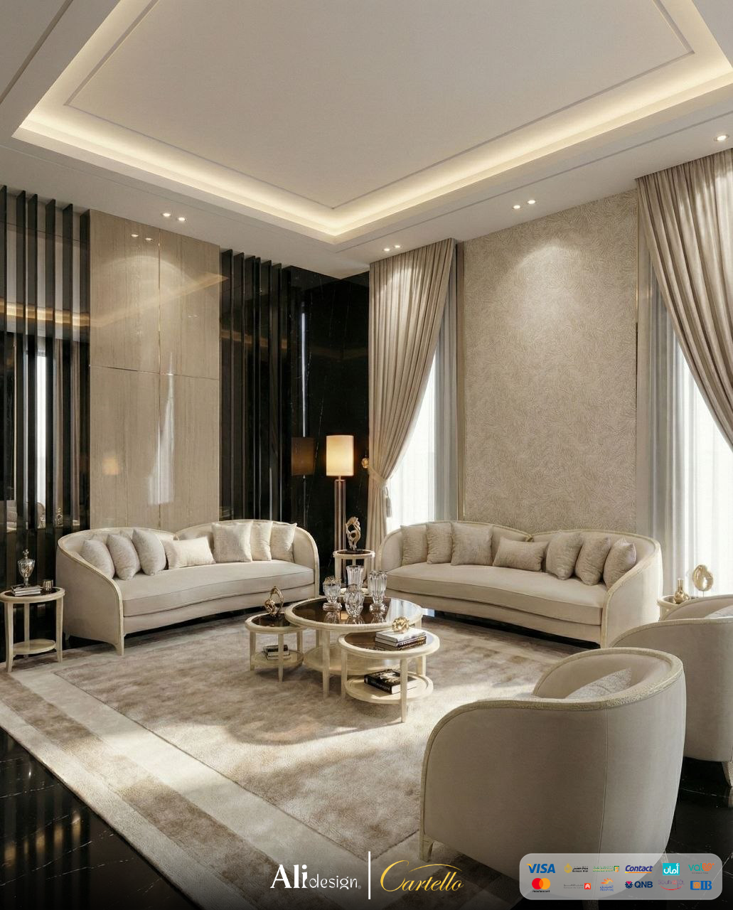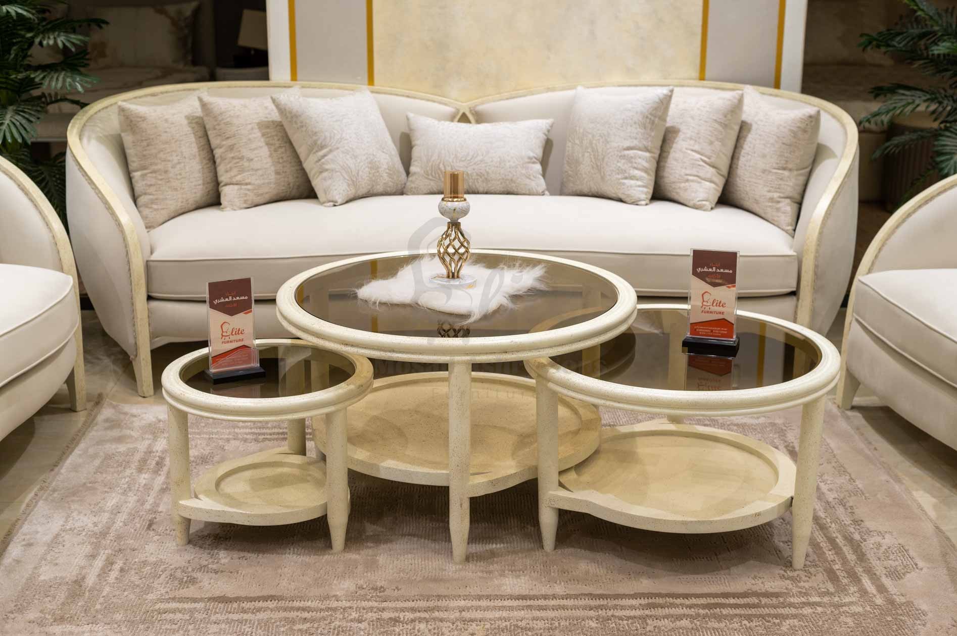 صالون نيو كلاسيك الترا مودرن – كنبة كبيرة، كنبة وسط، 2 فوتيه وترابيزة رخام