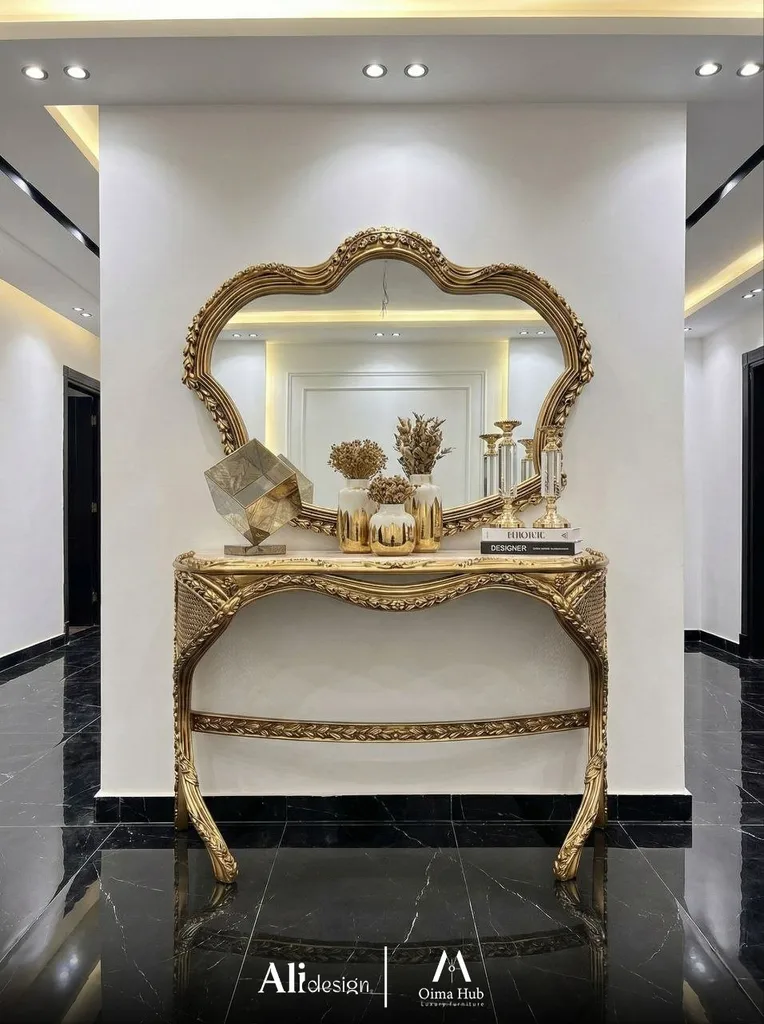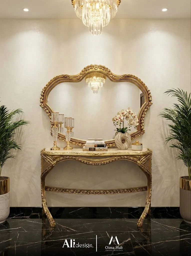 تصميم كونسول كلاسيك يمنح المدخل أو غرفة المعيشة لمسة فخامة راقية مع تفاصيل واضحة تجمع بين الجمال والعملية.