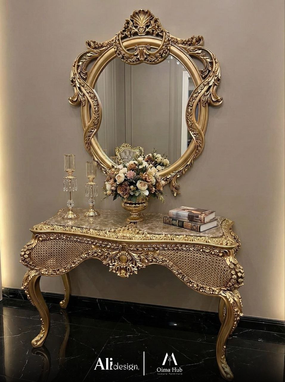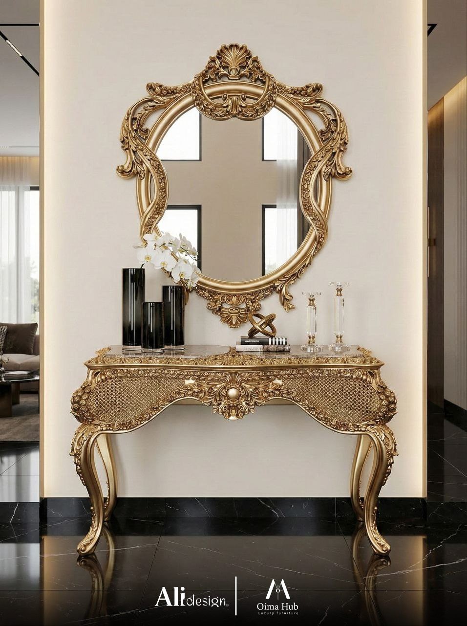 تصميم كونسول كلاسيك يمنح المدخل أو غرفة المعيشة لمسة فخامة راقية مع تفاصيل واضحة تجمع بين الجمال والعملية.