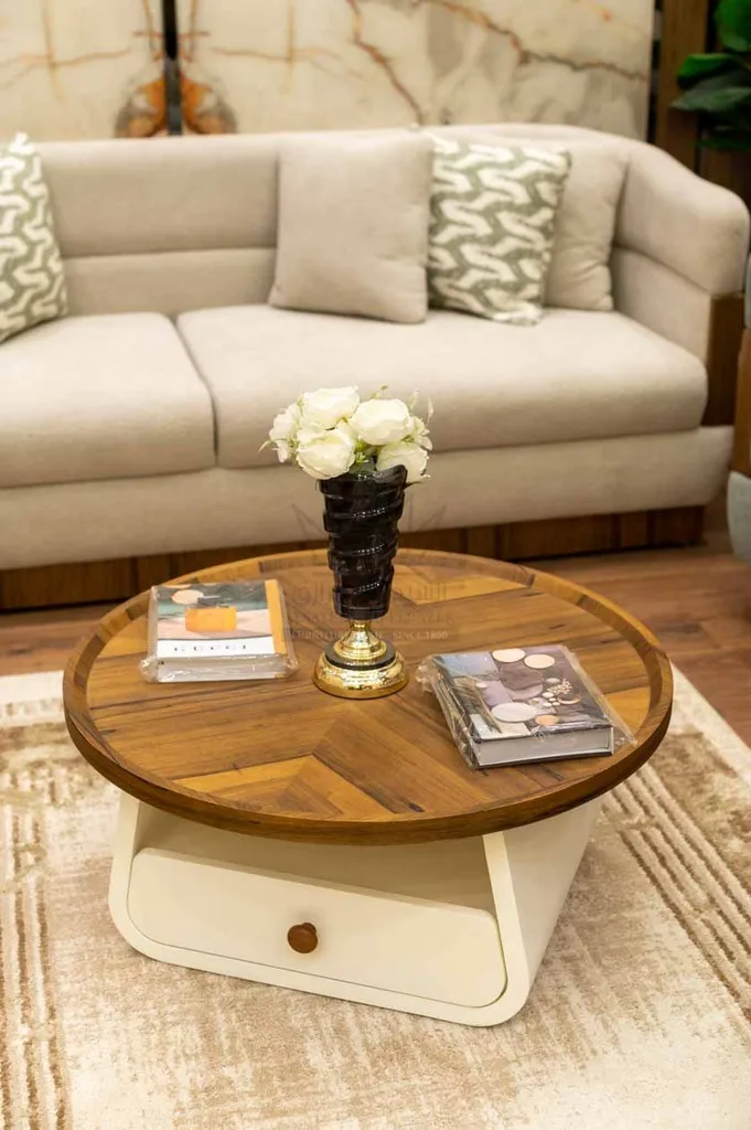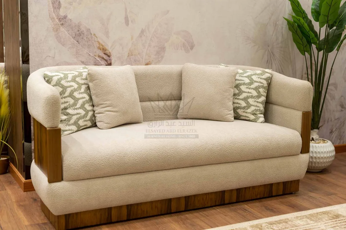 غرفة معيشة مودرن أنيق بتصميم عملي يجمع بين الراحة والبساطة العصرية. تتكوّن من أرائك واسعة ذات هيكل خشبي قوي بلمسة طبيعية دافئة، مع جوانب وأذرع منحنية تمنح مظهرًا انسيابيًا مريحًا. الخطوط المستقيمة والحواف المستديرة تضيف توازنًا بصريًا يعزز جمال التصميم. الطاولة الوسطى بتصميم دائري مميز، تجمع بين الخشب الطبيعي وتشطيب ناعم مع وحدة تخزين سفلية عملية. الكرسي الجانبي مصمم بخطوط بسيطة وحواف ناعمة تكمل انسجام المجموعة، بينما البوف المستدير يضيف مرونة في الاستخدام ومساحة جلوس إضافية.