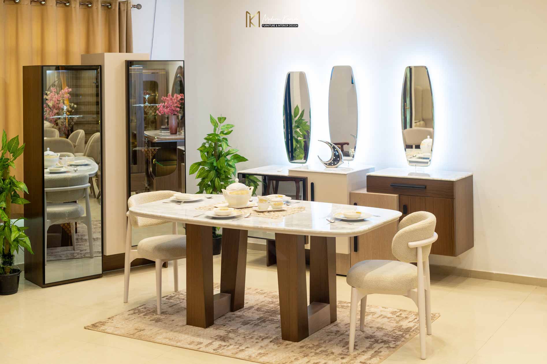 غرفة طعام بتصميم عصري يجمع بين الأناقة والوظيفية
