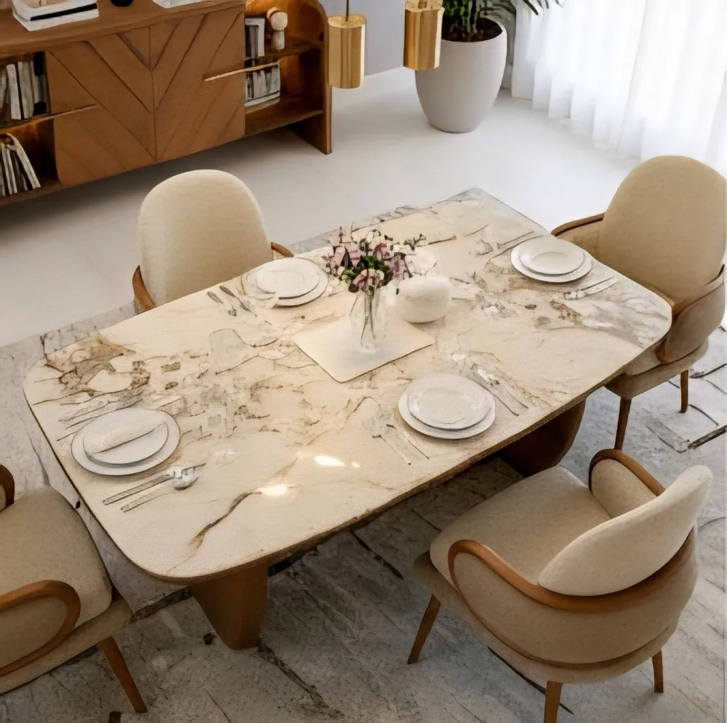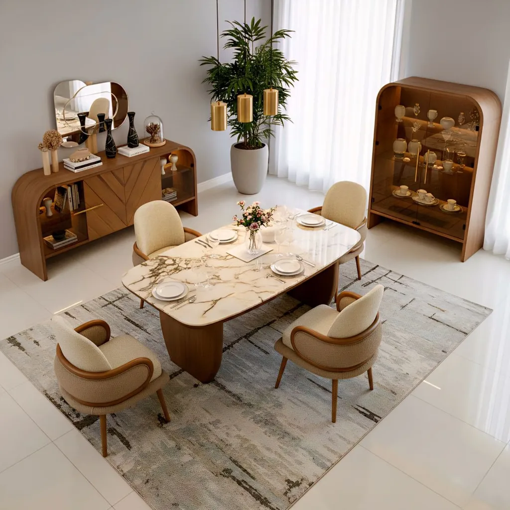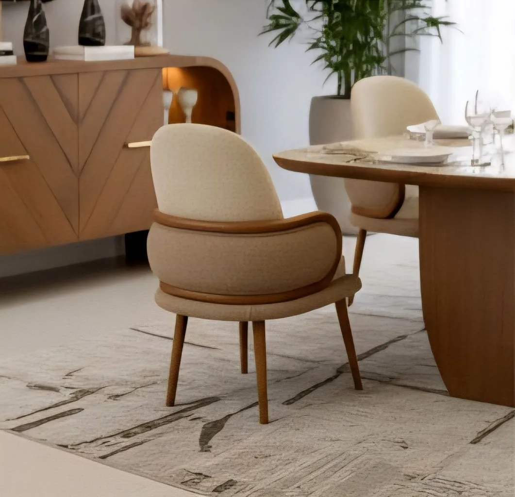 تتميز السفرة بهيكل مصنوع من أخشاب طبيعية 100% يمنحك قوة تحمل ممتازة وثبات يدوم لسنوات، مع تشطيب راقٍ يعكس جمال التفاصيل ودقة الصناعة. الكراسي تأتي بمقعد مريح وقماش عالي الجودة مقاوم للاهتراء، ليمنحك تجربة جلوس مريحة ومظهرًا عصريًا متناغمًا.