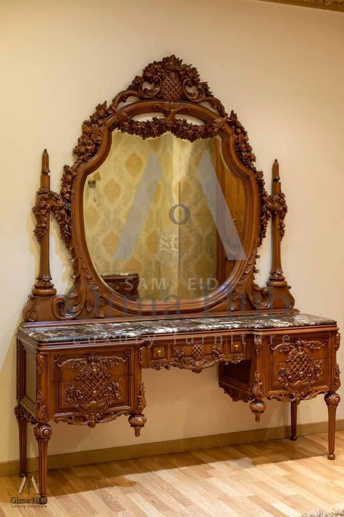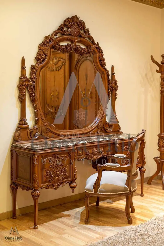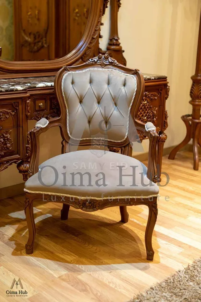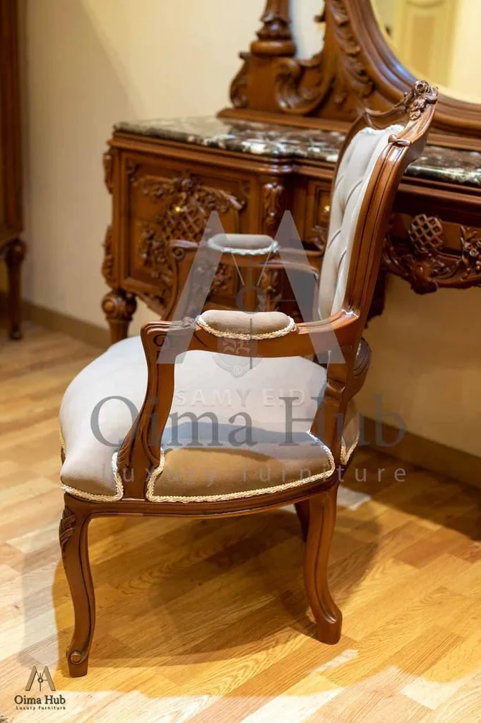 سرير . دولاب . تسريحة . كرسى تسريحة كلاسيك . 2 كومود . شماعة ملابس