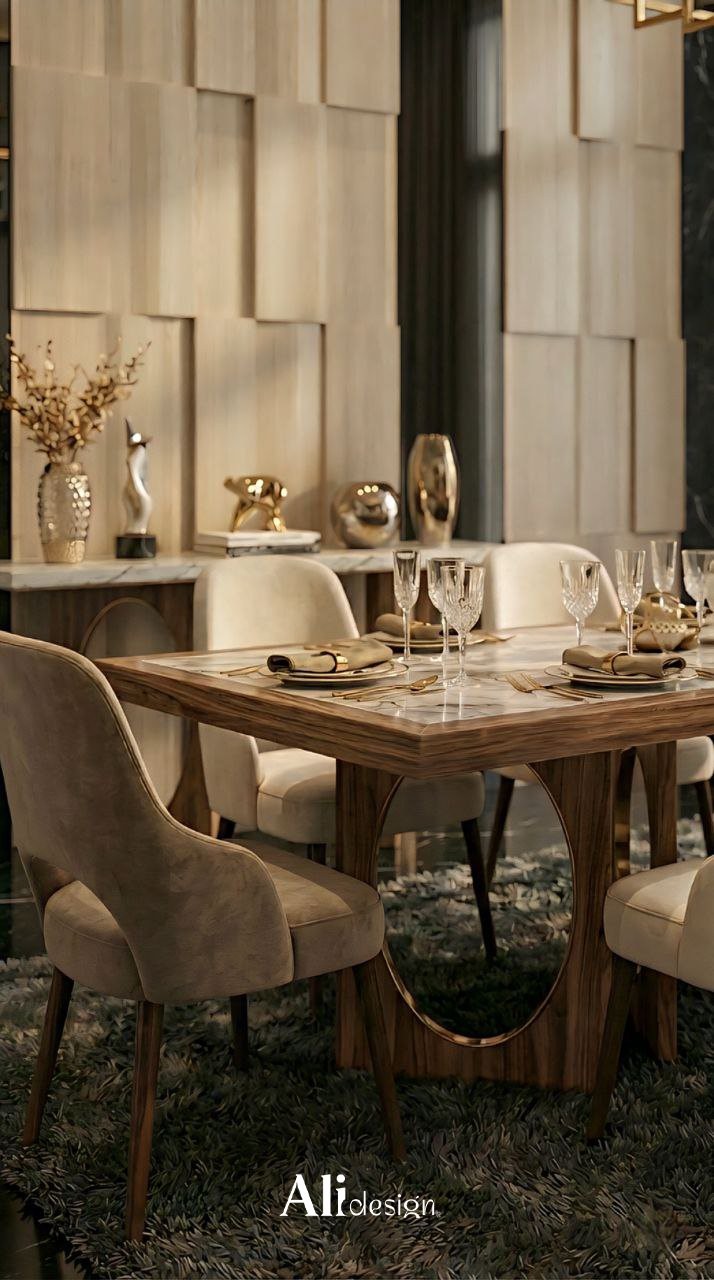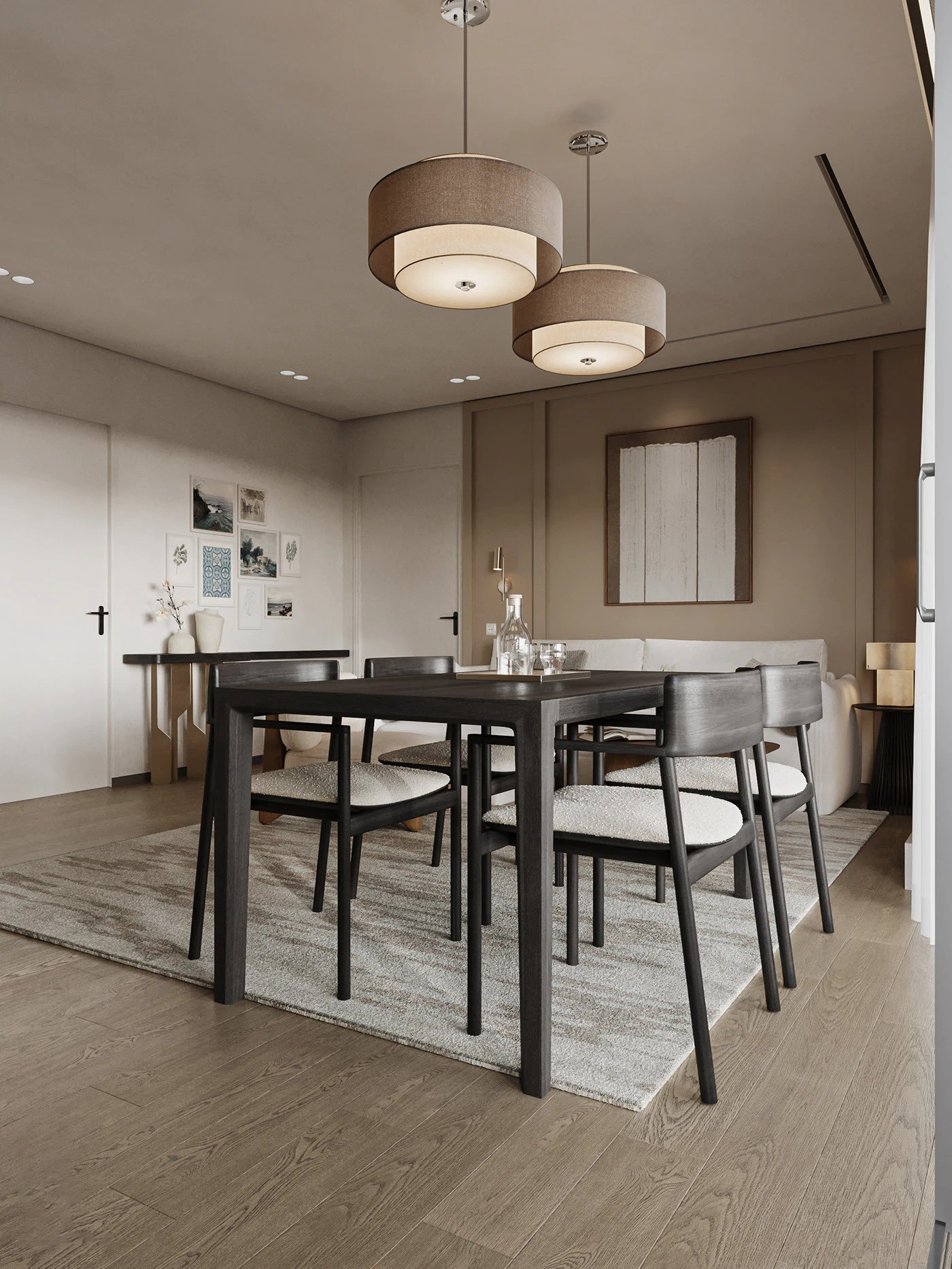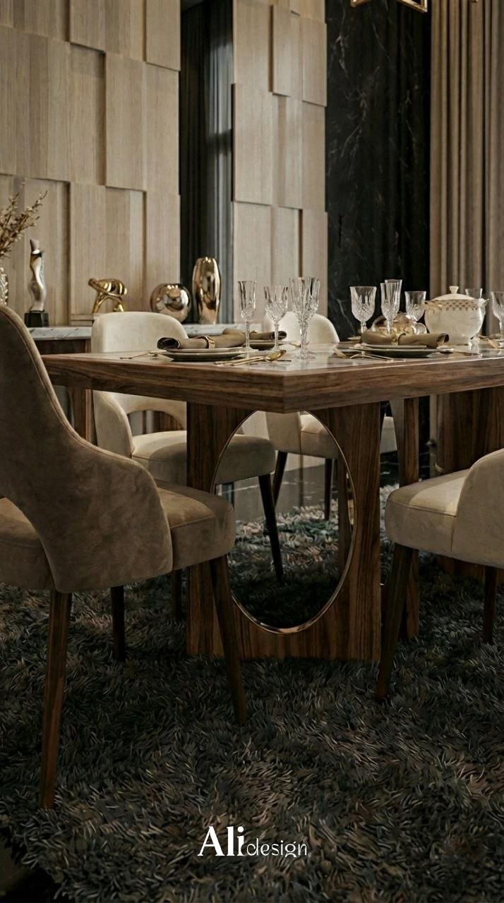 غرفة طعام مودرن مصممة خصيصًا للمساحات الصغيرة، تجمع بين الأناقة والعملية بدون أي تكدس. تصميم بسيط وخفيف يدي إحساس بالاتساع مع لمسة عصرية راقية تناسب الشقق الحديثة.