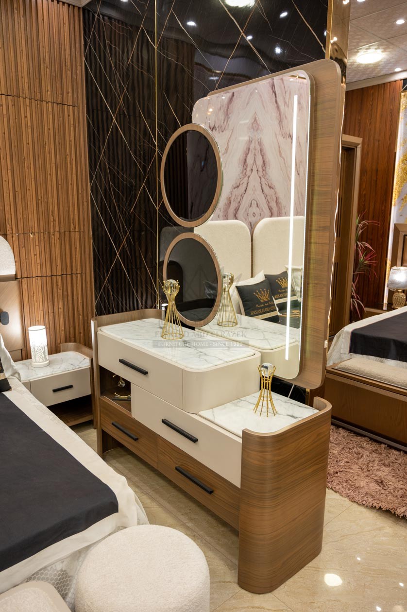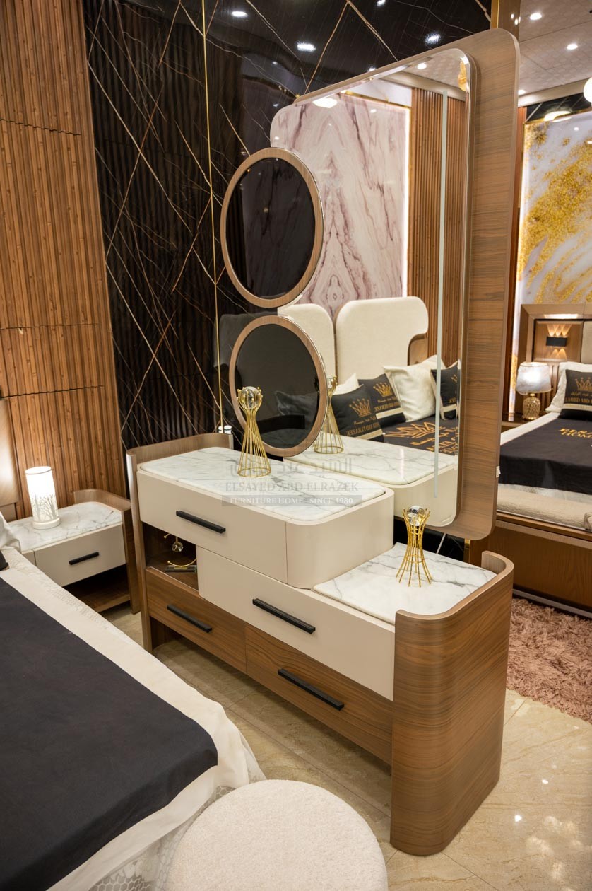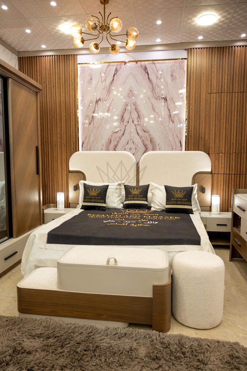 غرفة نوم مودرن بتجمع بين الراحة والفخامة في تصميم عصري أنيق. كل قطعة مصممة بعناية لتوفير مساحة عملية وأناقة متناسقة، مع تشطيب متقن يعطي لمسة راقية للغرفة. مثالية للعرسان أو أي حد بيجدد بيته ويحب التفاصيل الدقيقة والفخامة في كل قطعة.