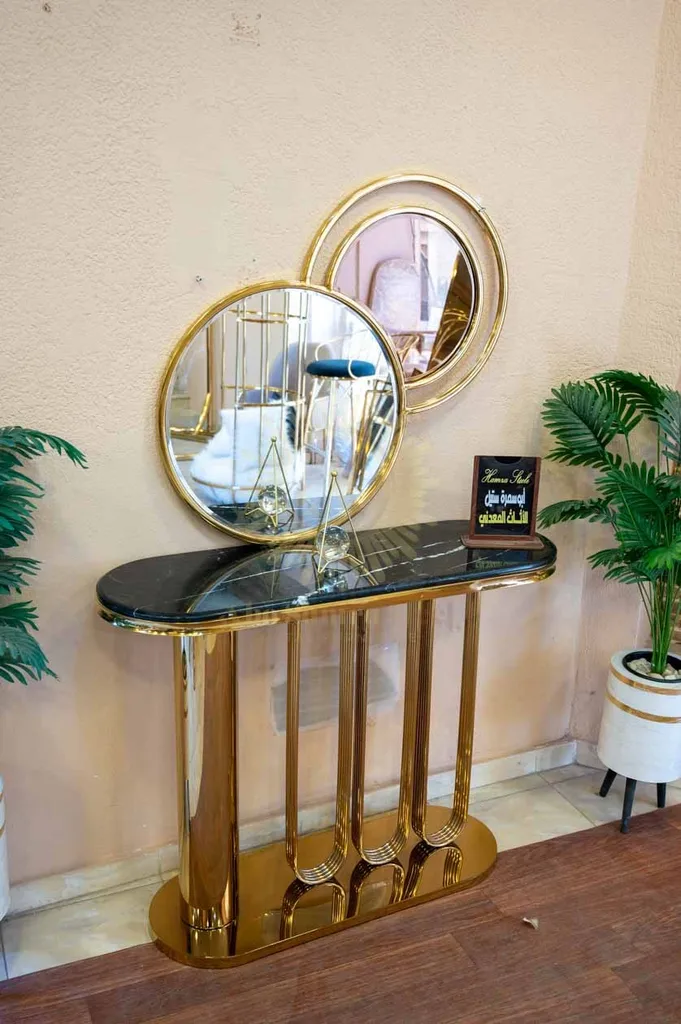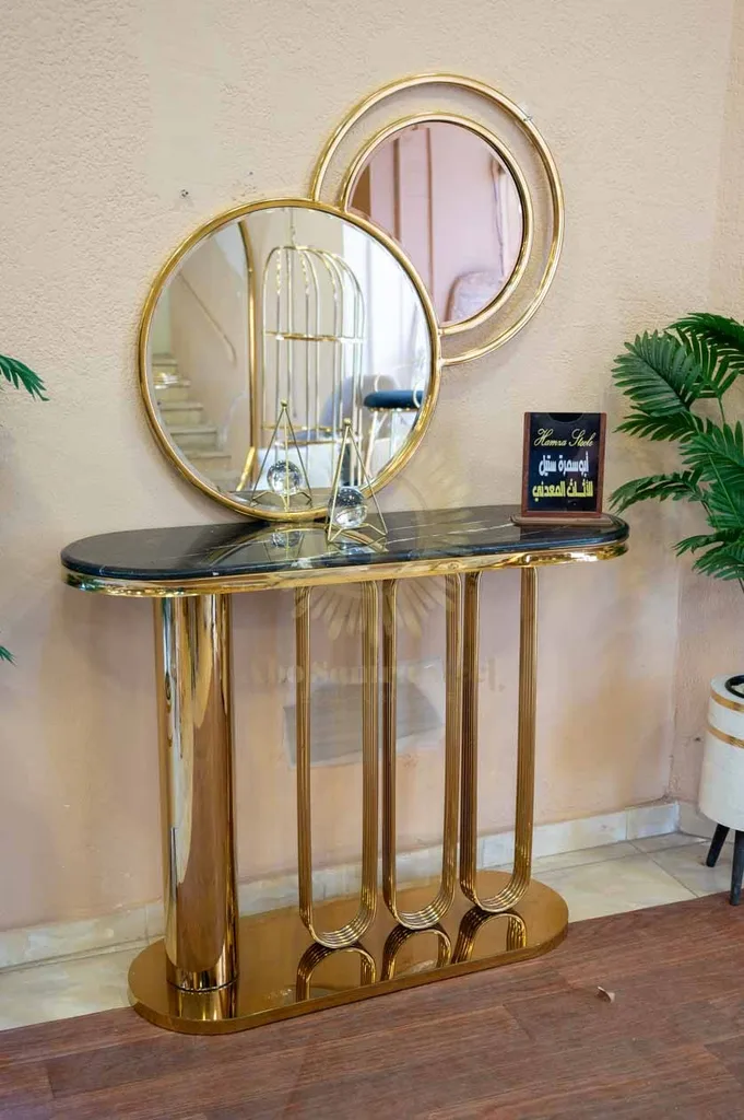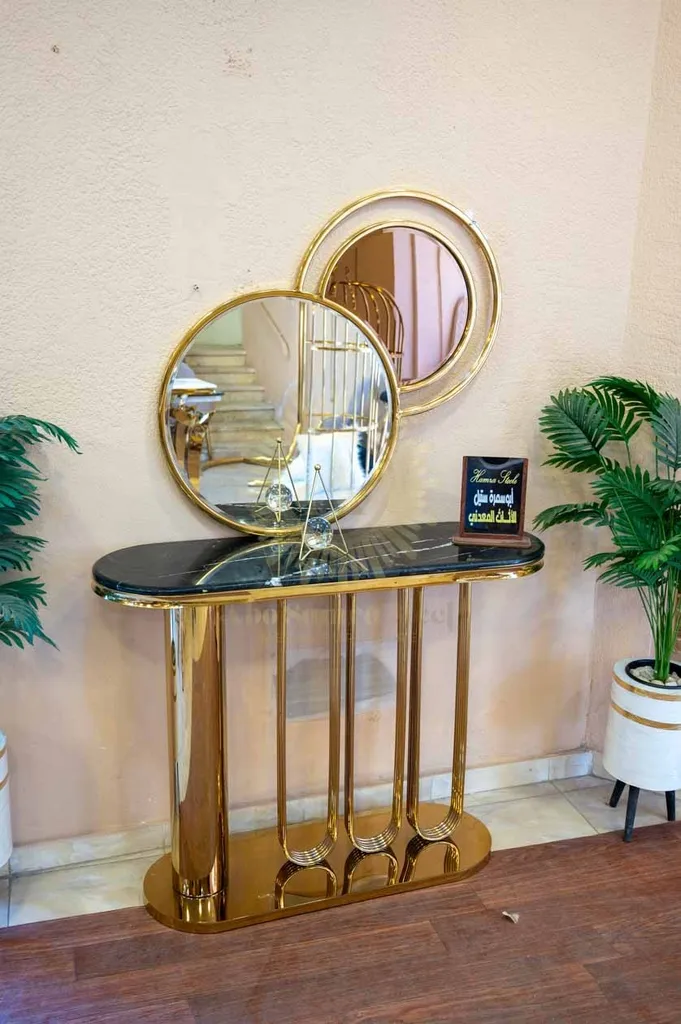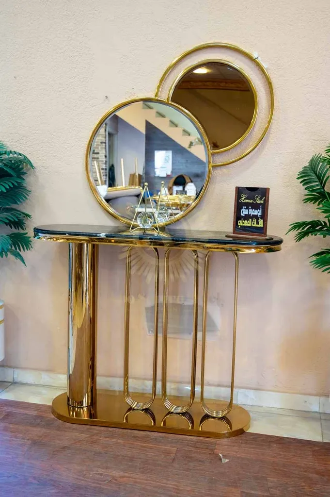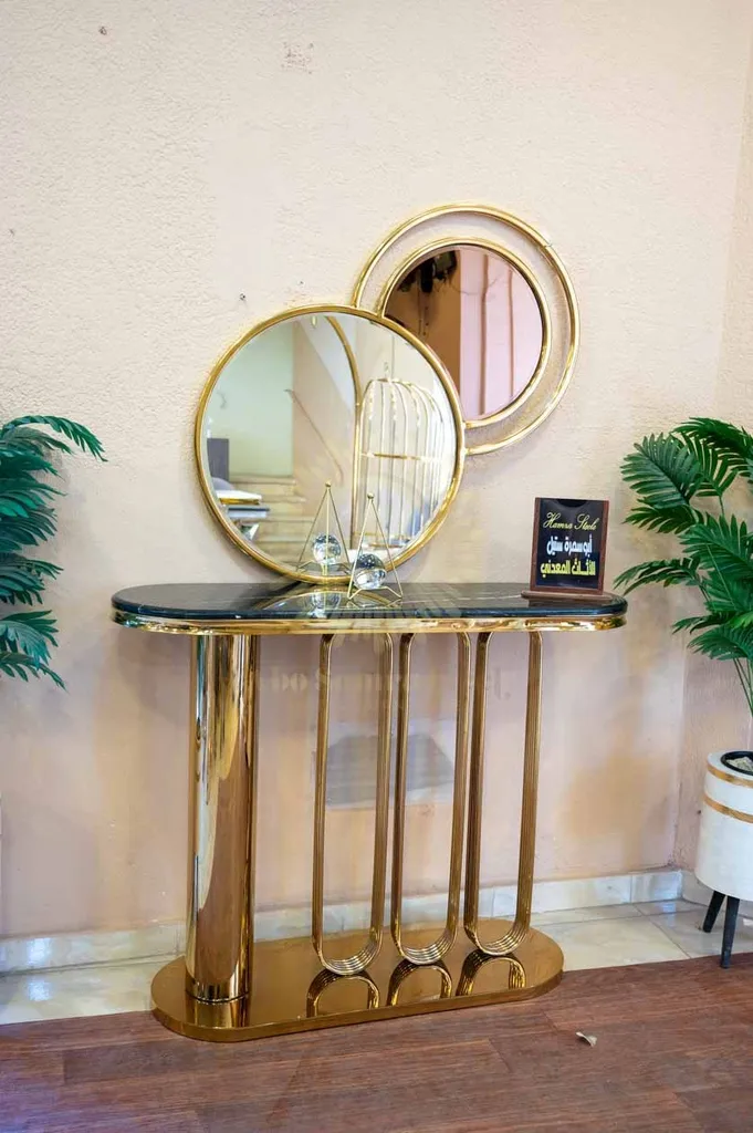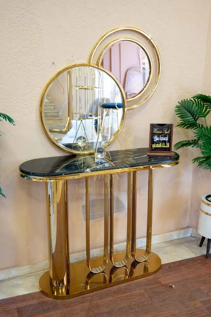 أضف لمسة فخامة عصرية لمدخل منزلك أو غرفة المعيشة مع كونسول مودرن بتصميم هندسي مميز يجمع بين القوة الجمالية والعملية. يتميز الكونسول بقاعدة مصنوعة من الستانلس ستيل عالي الجودة بتشطيب ذهبي فاخر يمنح المكان حضورًا راقيًا ولافتًا.