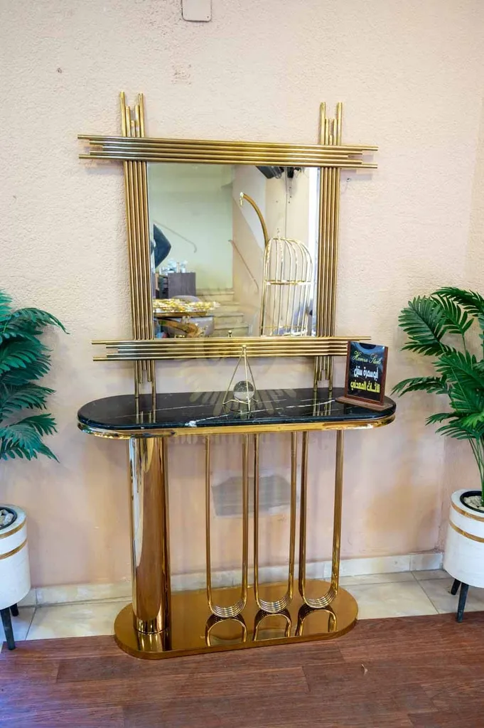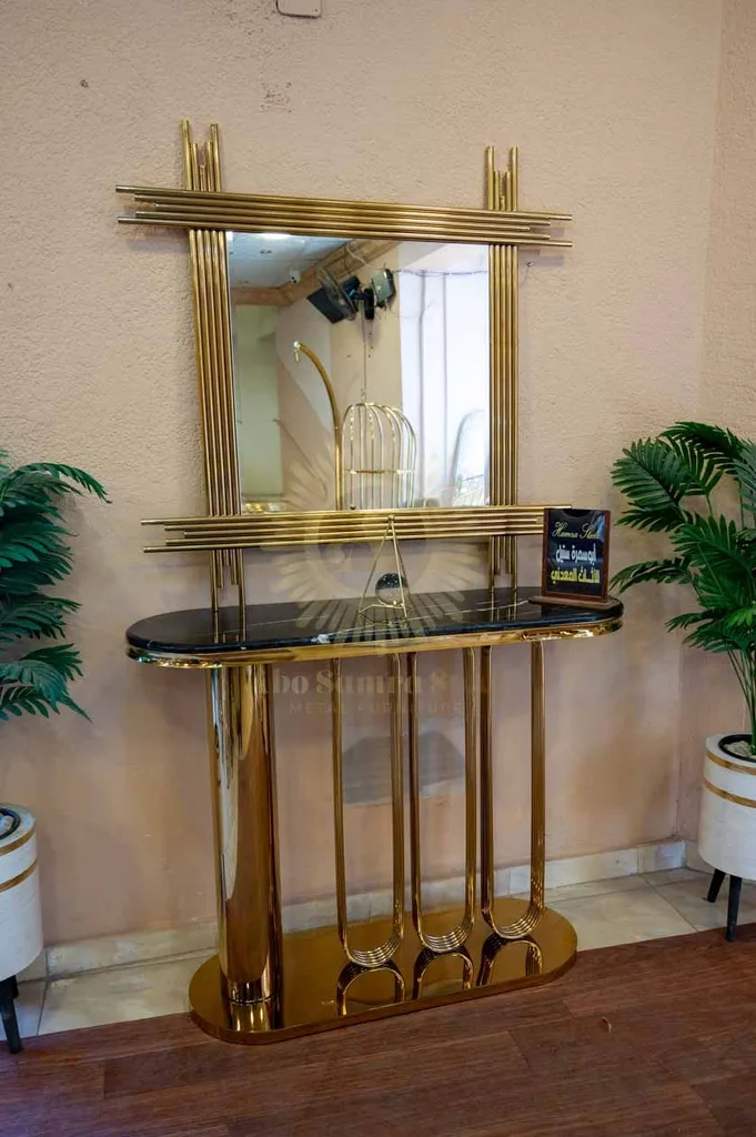 أضف لمسة فخامة عصرية لمدخل منزلك أو غرفة المعيشة مع كونسول مودرن بتصميم هندسي مميز يجمع بين القوة الجمالية والعملية. يتميز الكونسول بقاعدة مصنوعة من الستانلس ستيل عالي الجودة بتشطيب ذهبي فاخر يمنح المكان حضورًا راقيًا ولافتًا.