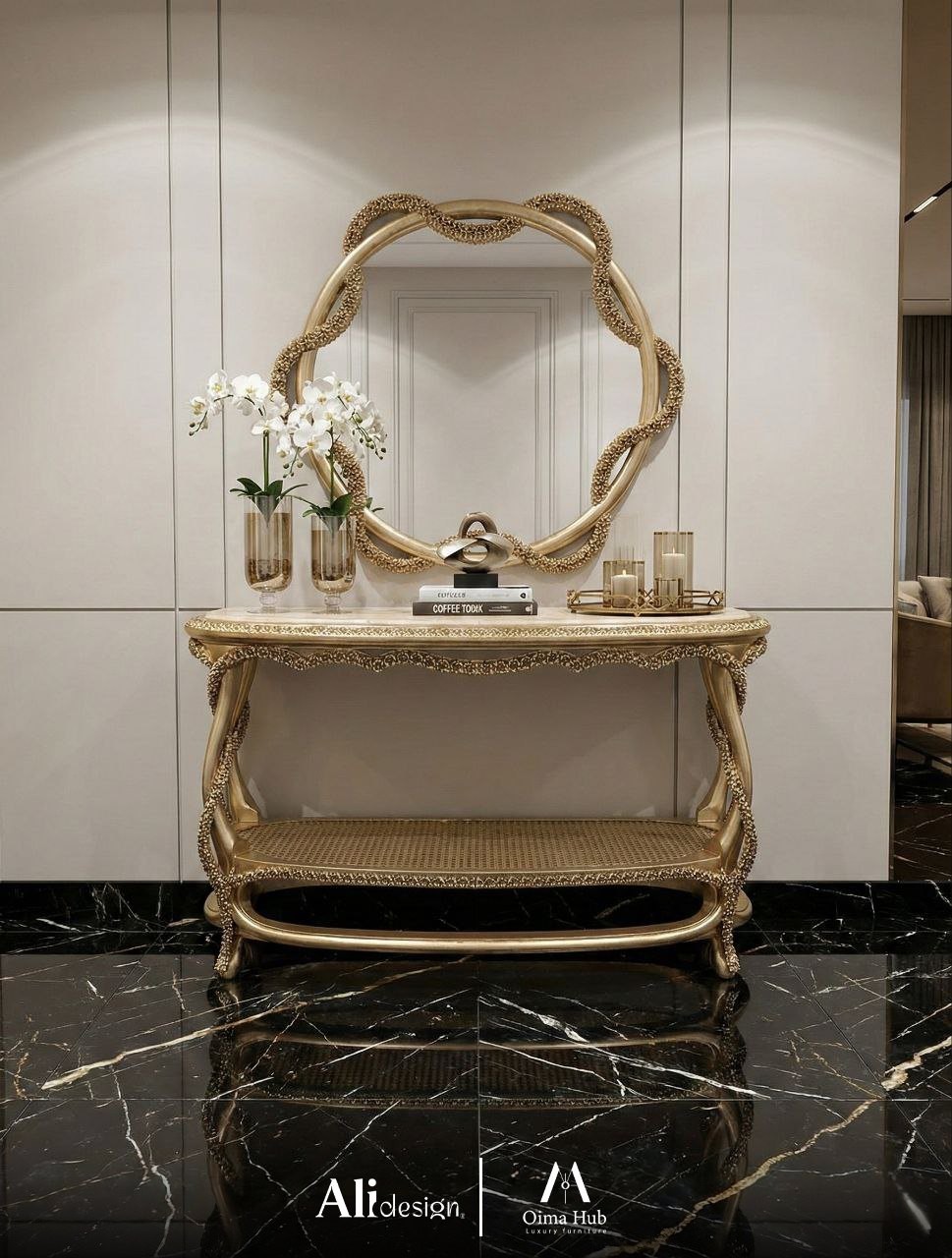 الكونسول مصنوع من الخشب الطبيعي بأسلوب كلاسيكي
