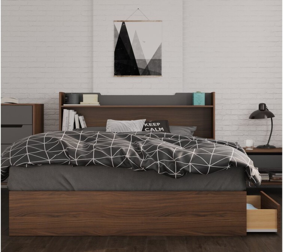 الوصف: سرير مع درجين ورف الأبعاد: العرض 140 سم - الارتفاع 100 سم - العمق 195 سم الخشب: طبيعي