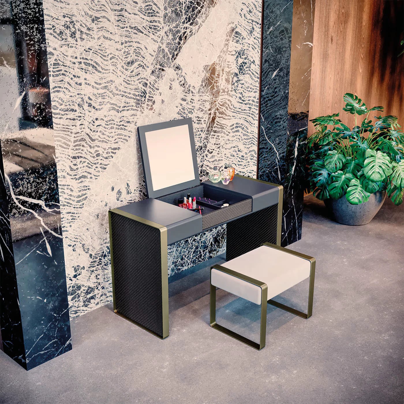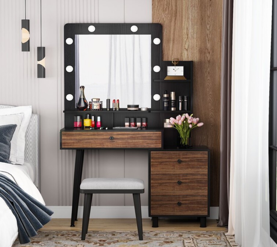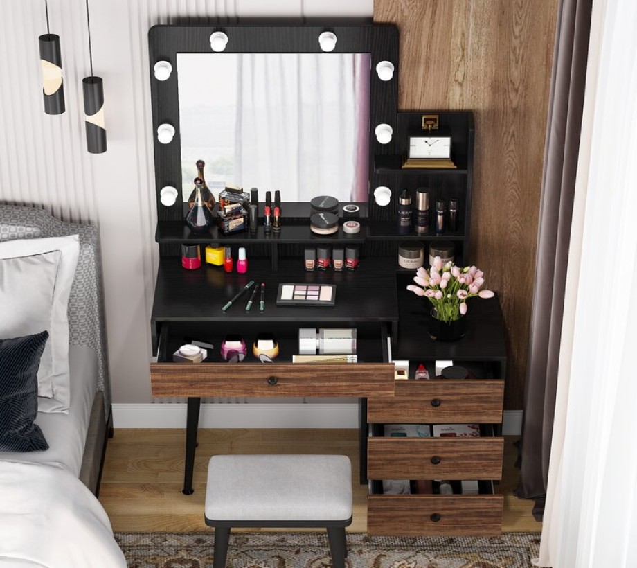 الأبعاد: العرض 120سم - الارتفاع 150سم - العمق 40سم الوصف: تسريحة مودرن مصنوعة من خشب MDF عالي الجودة