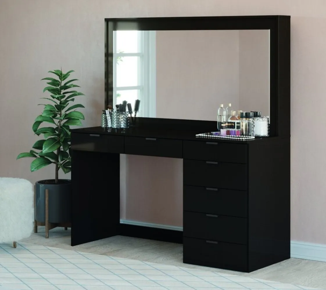 الأبعاد: العرض 100سم - الارتفاع 90سم - العمق 40سم الوصف: تسريحة مودرن مصنوعة من خشب MDF عالي الجودة