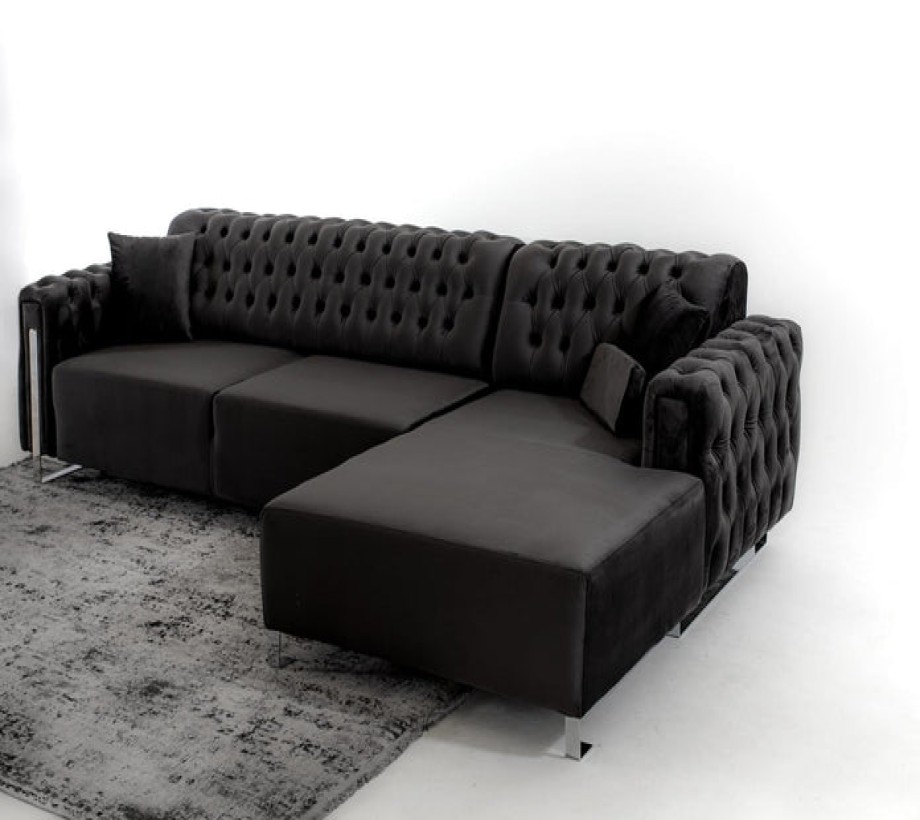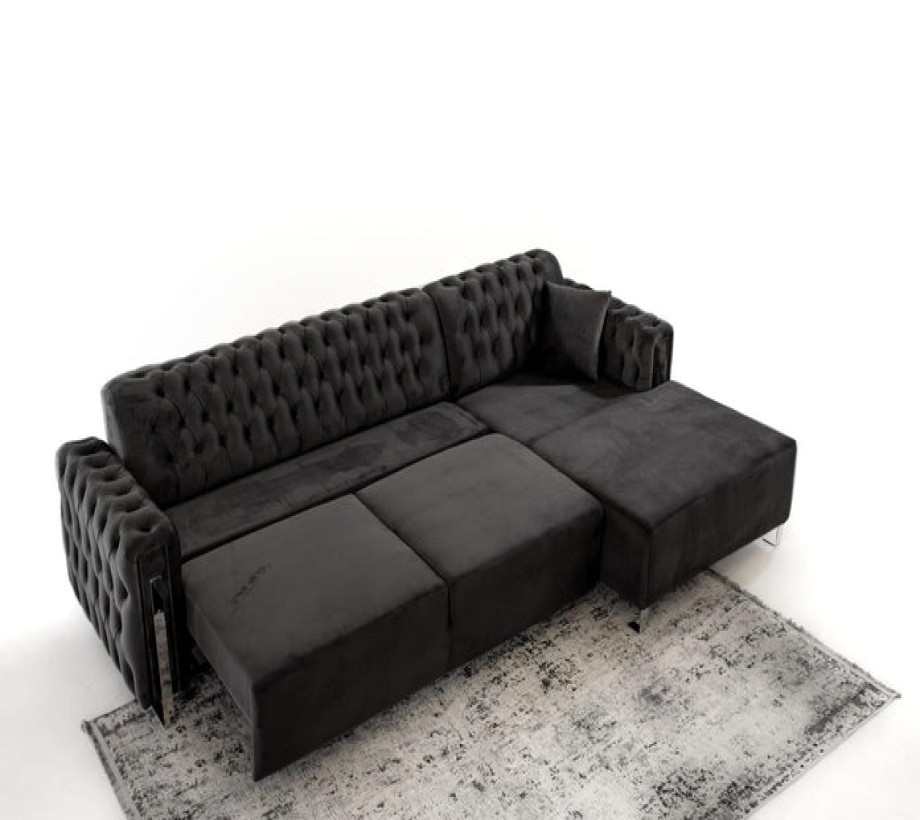 الأبعاد: العرض 320×180سم - الارتفاع 80سم - العمق 85سم الخشب: زان القماش: قطيفة