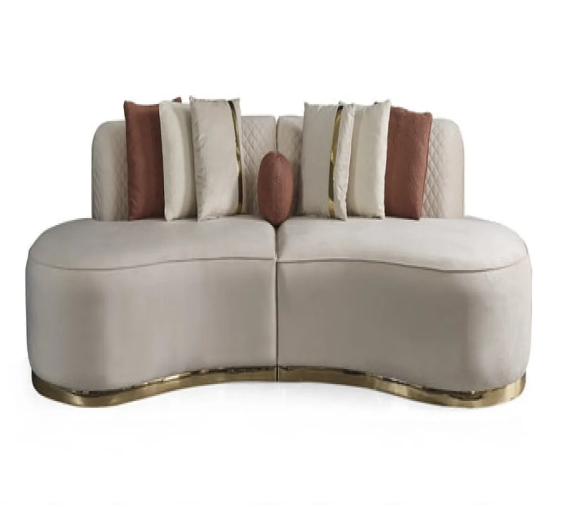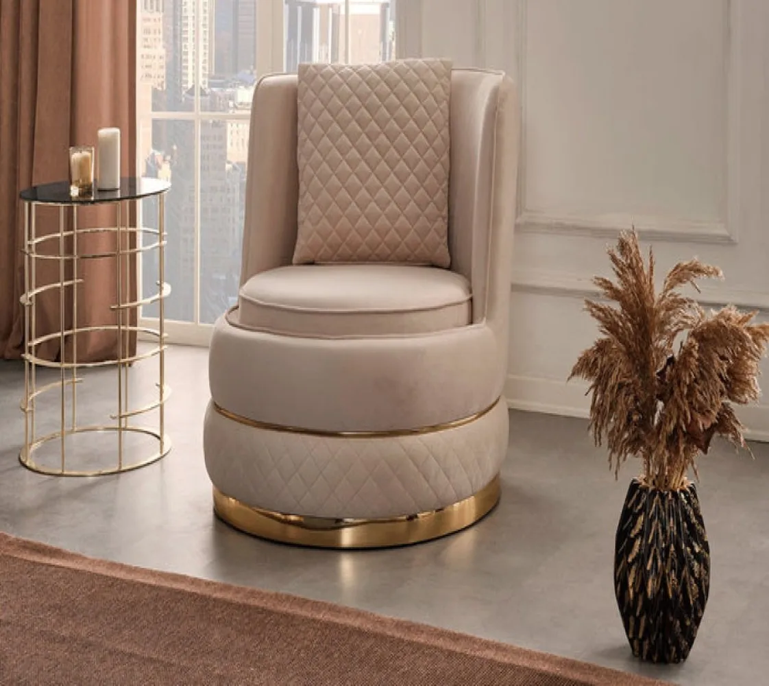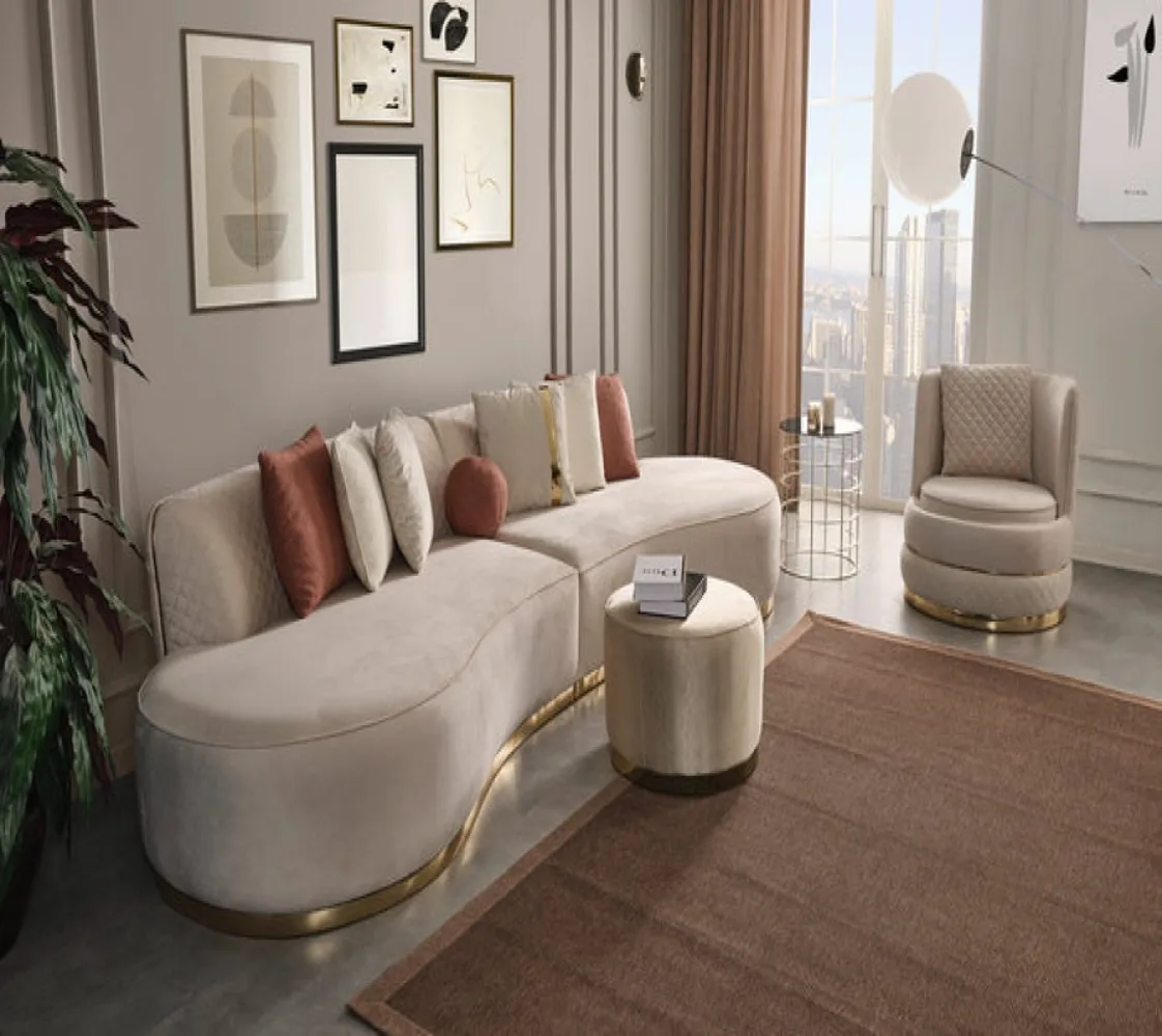 الأبعاد: العرض 330 سم - الارتفاع 77 سم - العمق 120 سم كرسي بذراعين دوار (عرض 80 سم) (عمق 85 سم) (ارتفاع 81 سم) الخشب: زان القماش: قطيفة