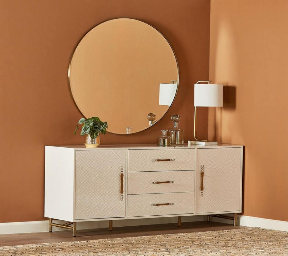 الوصف: يتكون من 2 ضلفة و 3 أدراج الخشب: خشب 0طبيعي الأبعاد: العرض 180 سم - الارتفاع 85 سم - العمق 50 سم ( عرض اطار المرآه 100 سم )