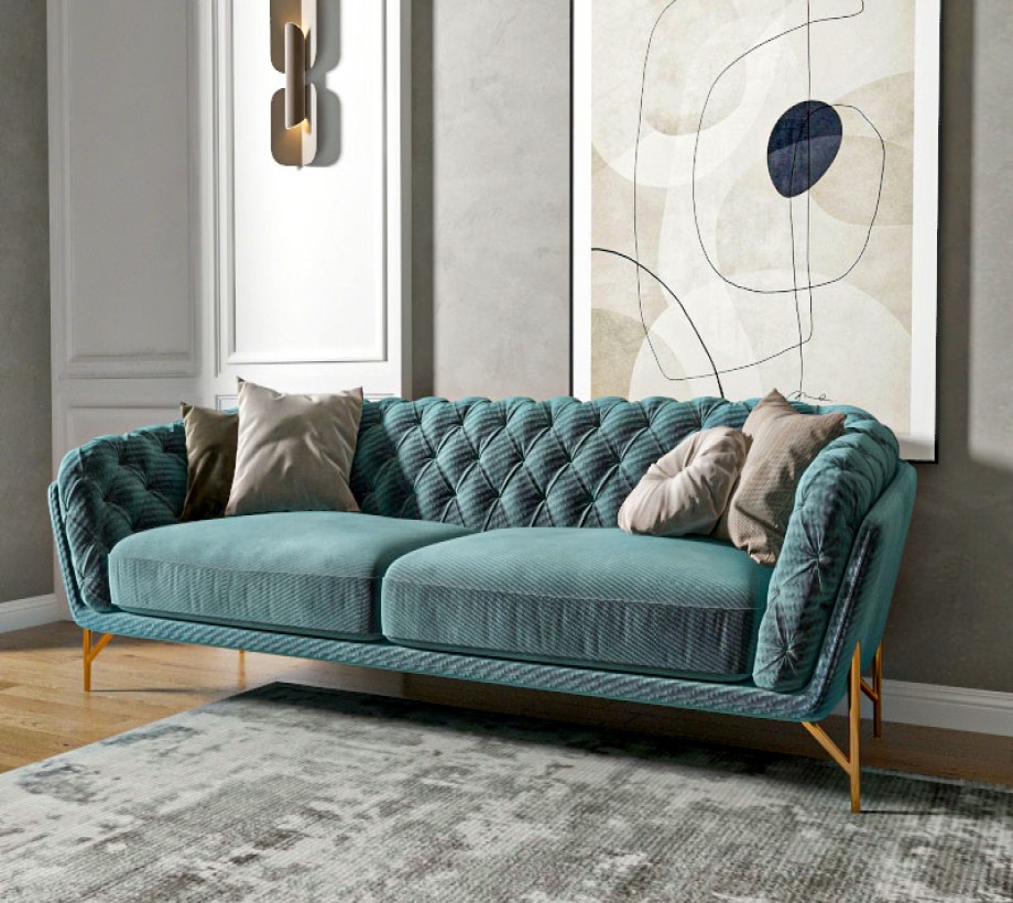 الأبعاد: العرض 250 سم - الارتفاع 85 سم - العمق 100 سم كنبة 3 مقاعد الخشب: زان القماش: قطيفة