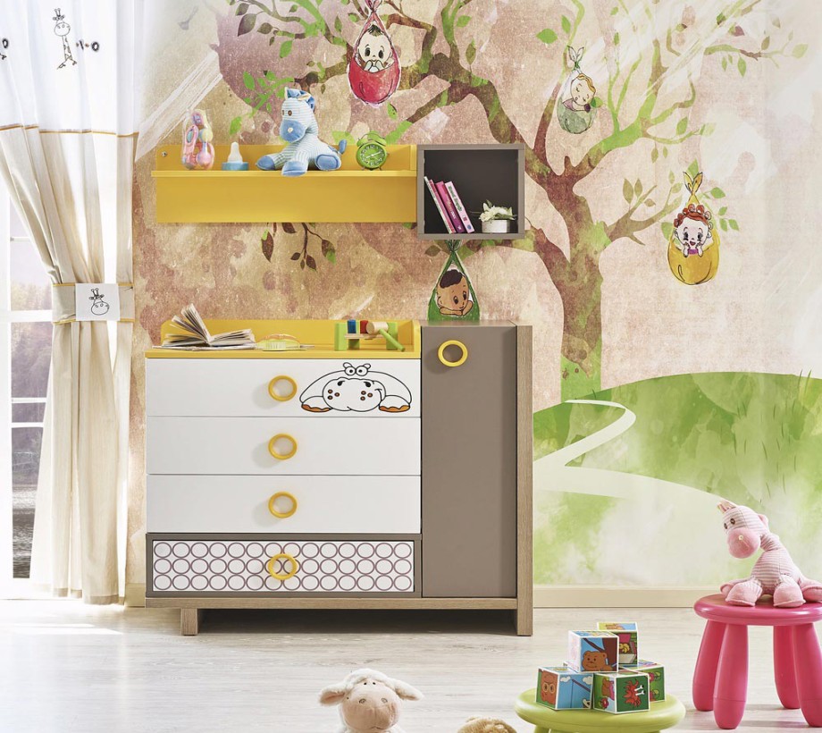 التخزين: 4 أدراج على اليسار وآخر على اليمين الأبعاد: عرض 105 سم × 50 سم × ارتفاع 93 سم