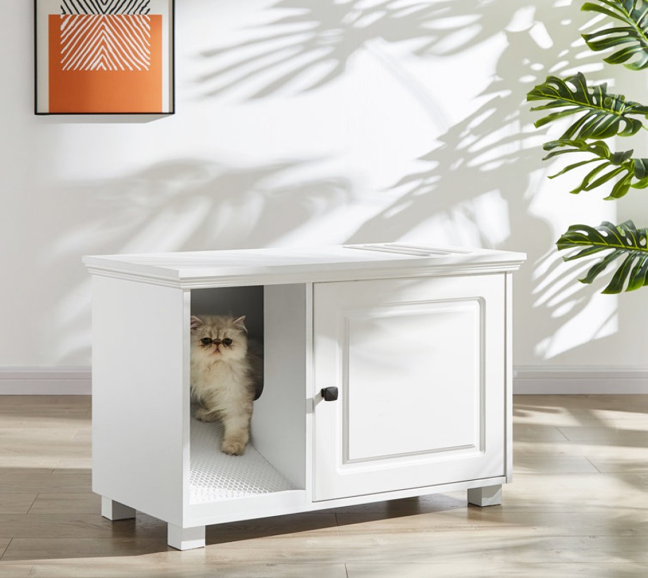 الوصف: بيت مثالي للقطط والكلاب للاستلقاء فيه الأبعاد: (عرض 80 سم) (عمق 40 سم) (ارتفاع 60 سم) الخشب: خشب طبيعي