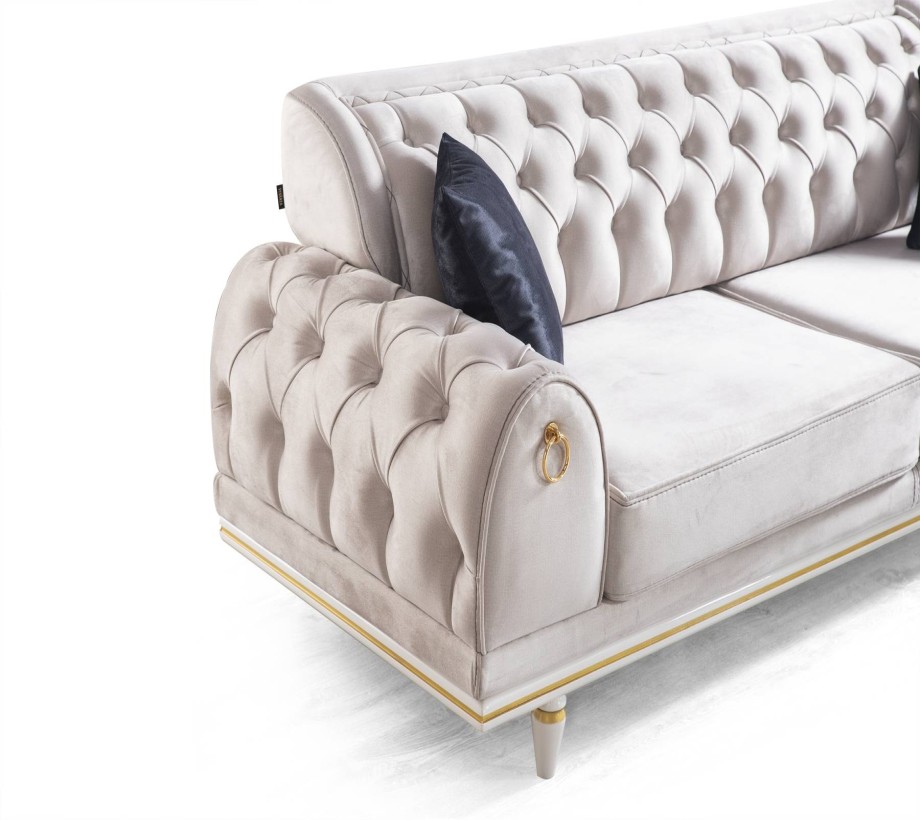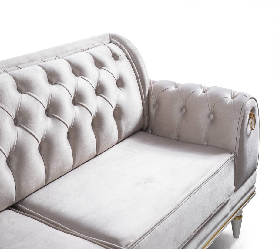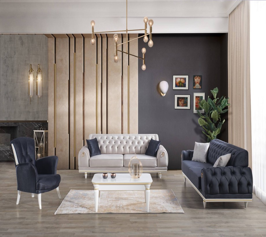 أريكة 230 سم عرض / 90 سم عمق / 82 سم ارتفاع كرسي 92 سم عرض / 90 سم عمق / 95 سم ارتفاع منضدة القهوة 110 سم عرض / 70 عمق سم / 42 سم ارتفاع