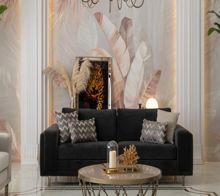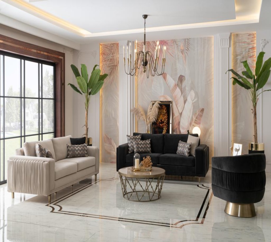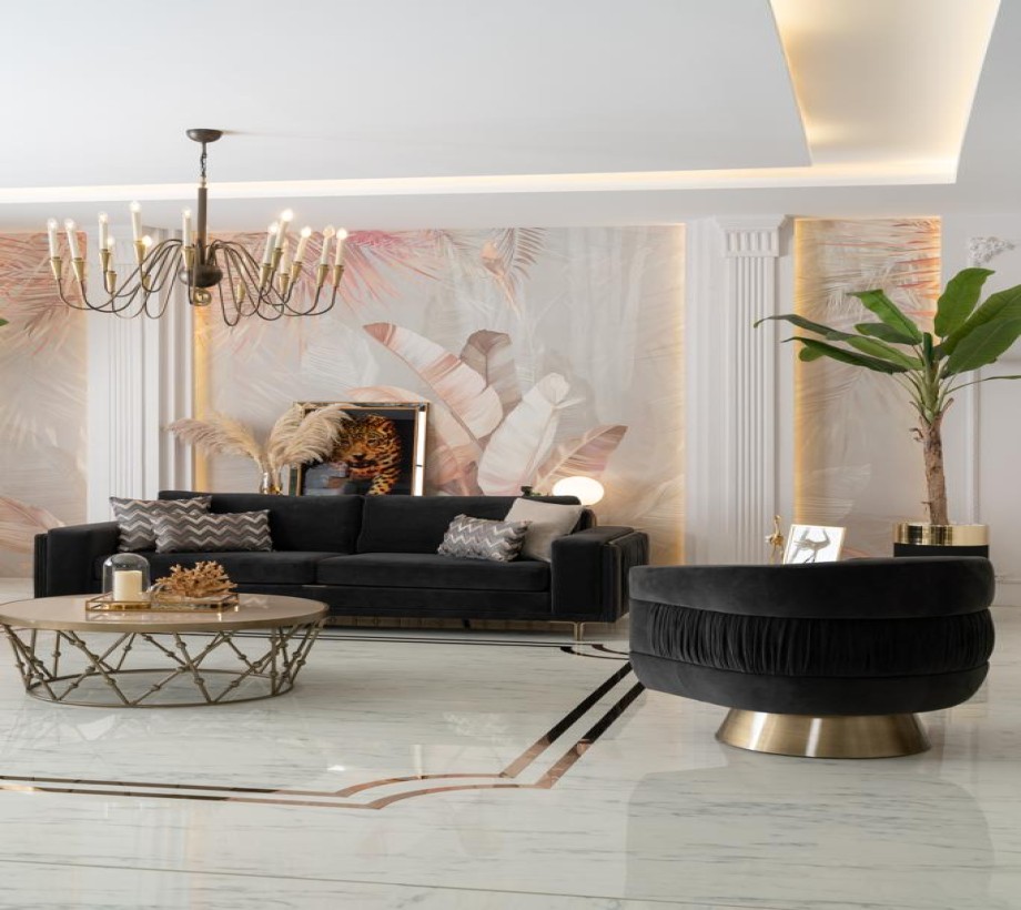غرفة معيشة غرفة معيشة مودرن مع مزيج من الستانلس بطابع عصرى