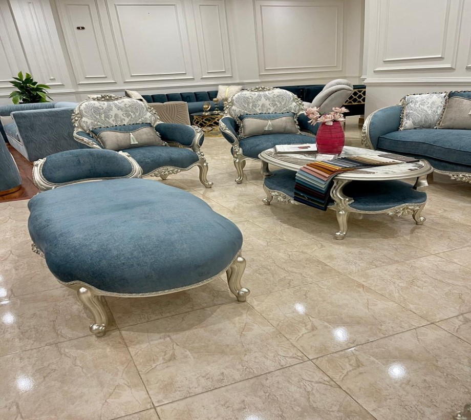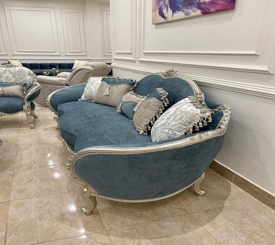 مكون من 2 كنبه و2 فوتيه وبانكيت وترابيزه من الخشب الطبيعي