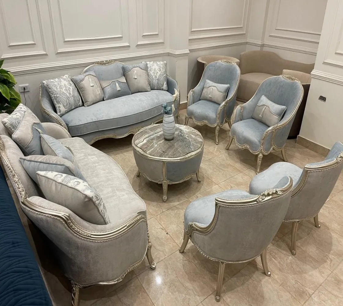 مكون من 2 كنبه و2 فوتيه و 2 كرسي وترابيزه من الخشب الطبيعي