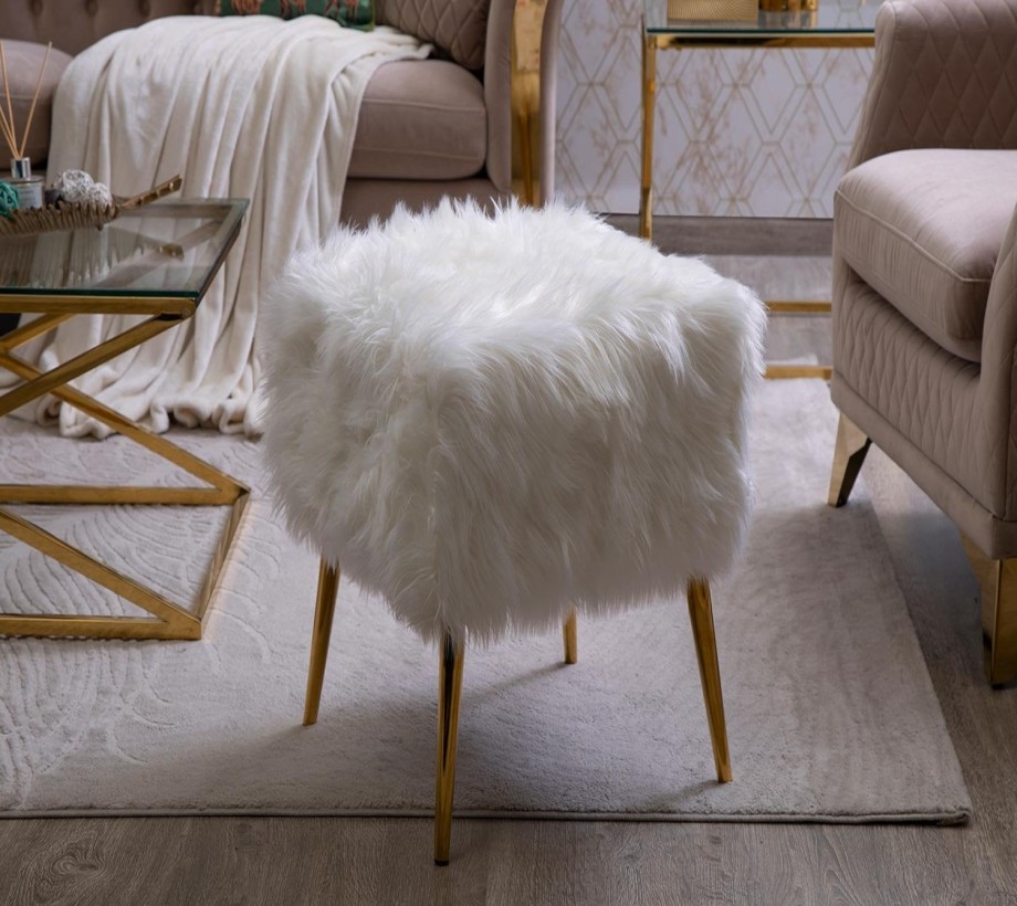 أبعاد المنتج: بوف (طول 45 سم) × (عرض 45 سم) × (ارتفاع 51 سم) المادة: ستيل النسيج: فروي