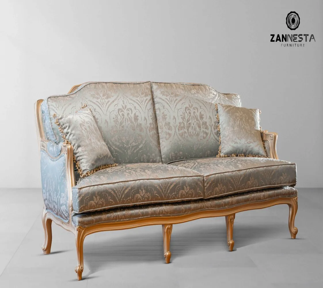 صالون مكون من كنبه 3 مقعد وكنبة 2 مقعد مع فوتيه وبانكيت بطابع كلاسيكى