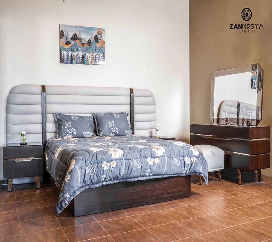 غرفة نوم مودرن Elite مكونة من : سريردولاب تسريحة 2 كمود وحدة أدراج مصنعة من الخشب الطبيعى بطابع عصرى