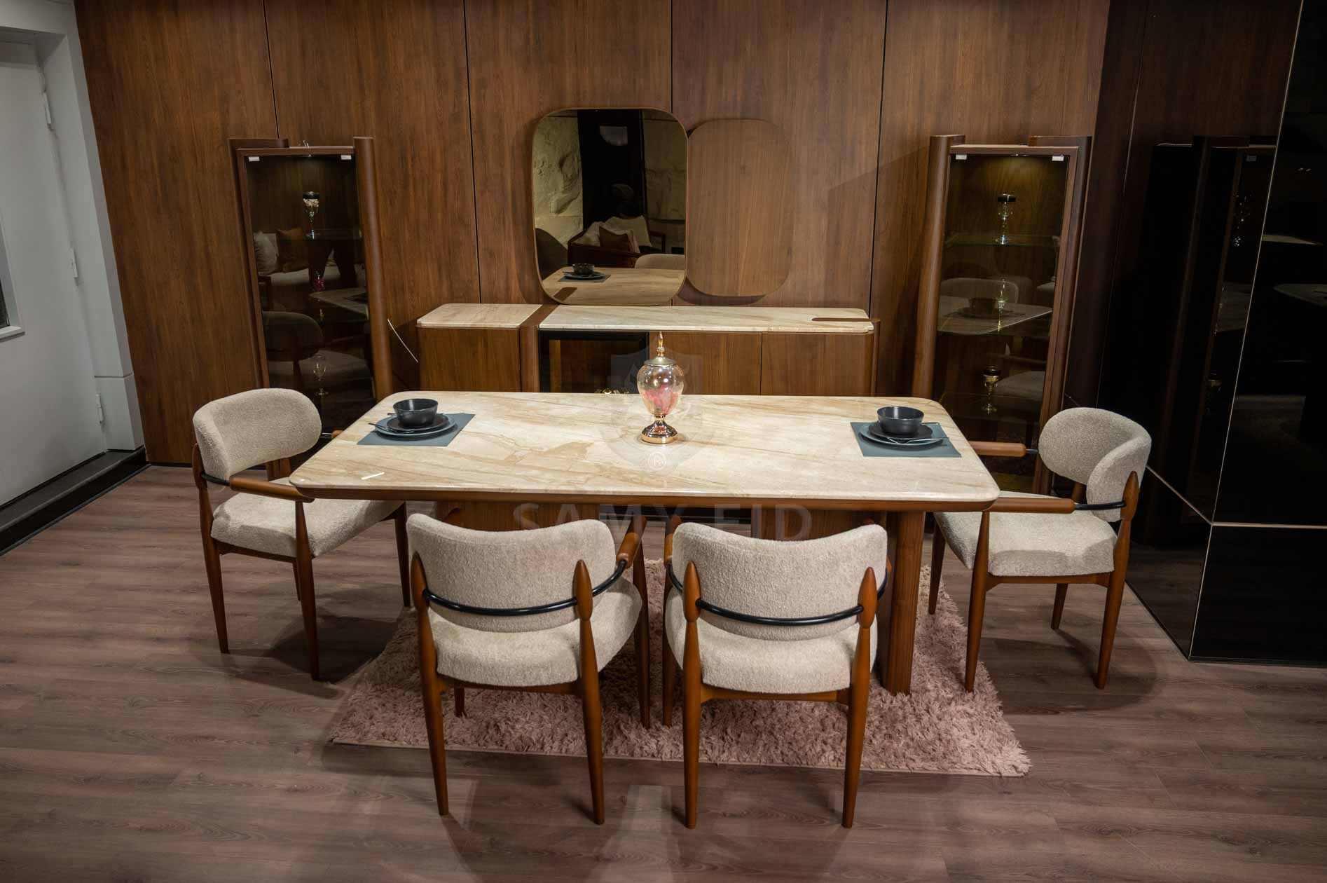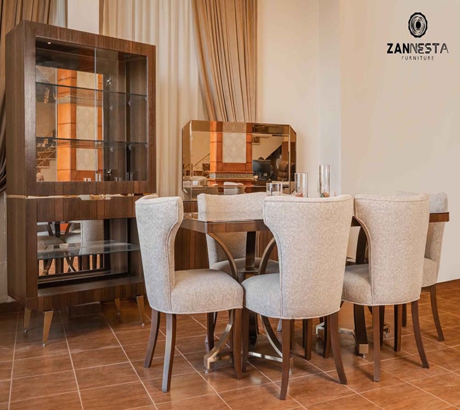غرفة طعام مكونة من: ترابيزة طعام مع 6 كراسى بوفيه ووحدة عرض خشبيه غرفة طعام مصنعه من الخشب الطبيعى بطابع عصرى راقى