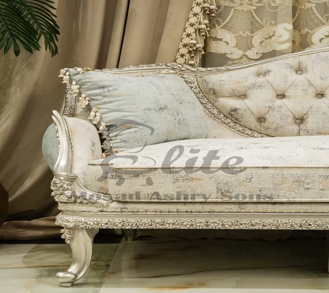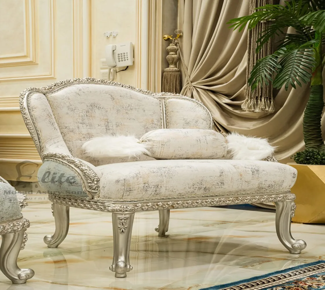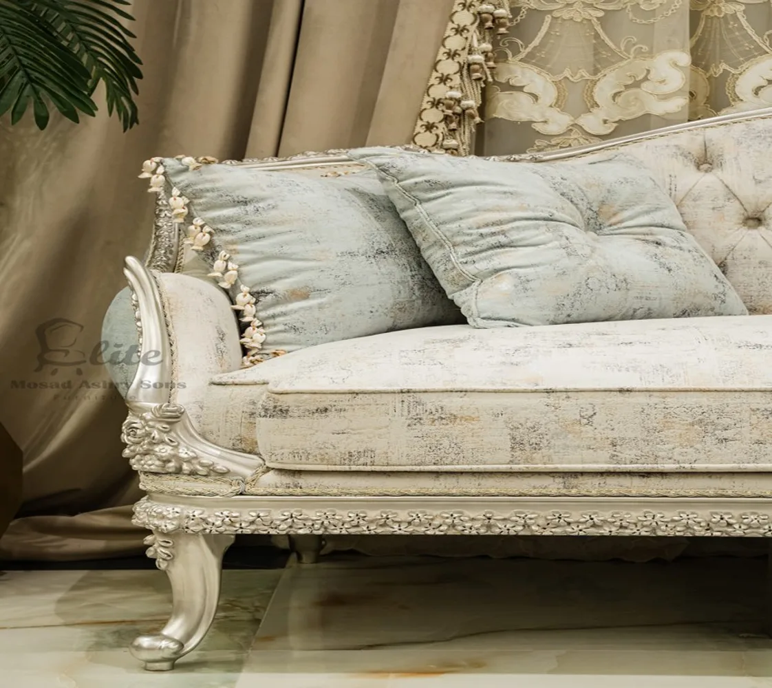 صالون نيو كلاسيك صالون مكون من كنبه كبيرة 3 مقعد وكنبه كبيرة مع 2 فوتيه وترابيزة من الرخام صالون مصنوع من الخشب الطبيعى بطابع كلاسيكى