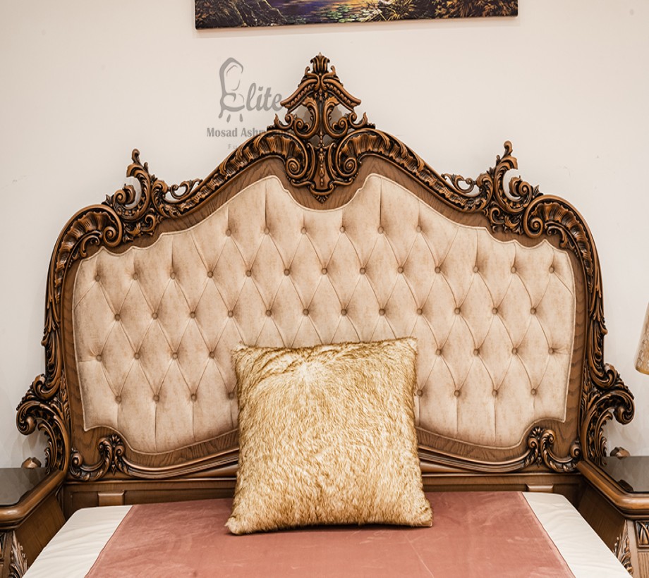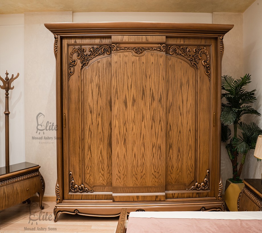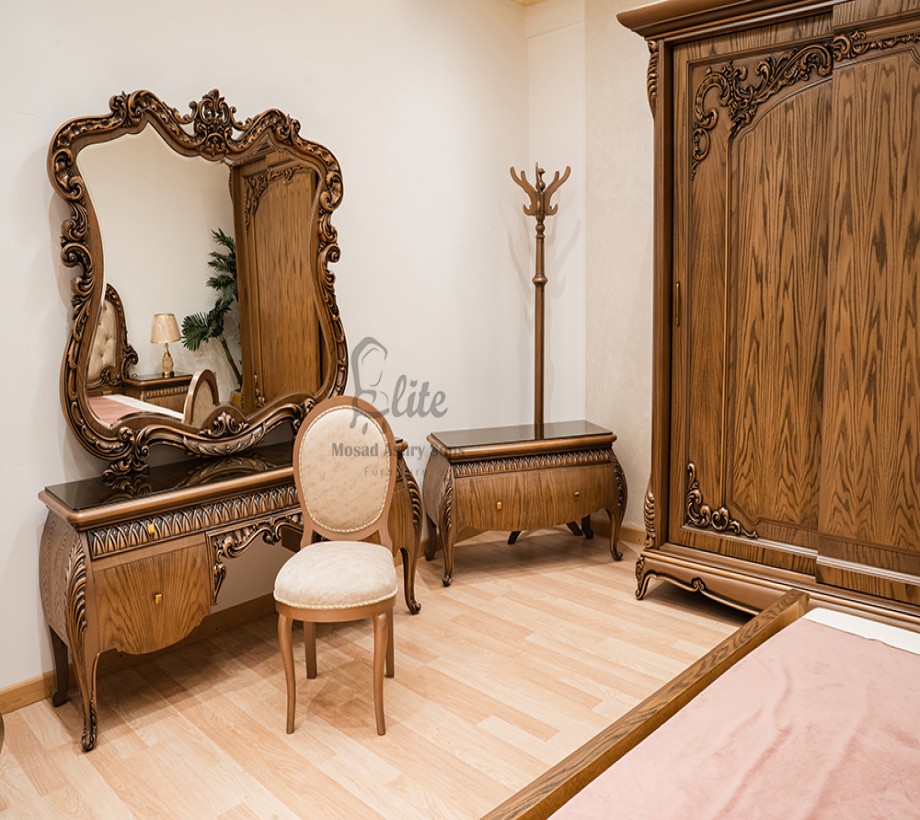 غرفة نوم كلاسيك غرفة مكونة من سرير دولاب 2 كمود تسريحة مع حامل ملابس غرفة مصنعة من الخشب الطبيعى بطابع كلاسيكى