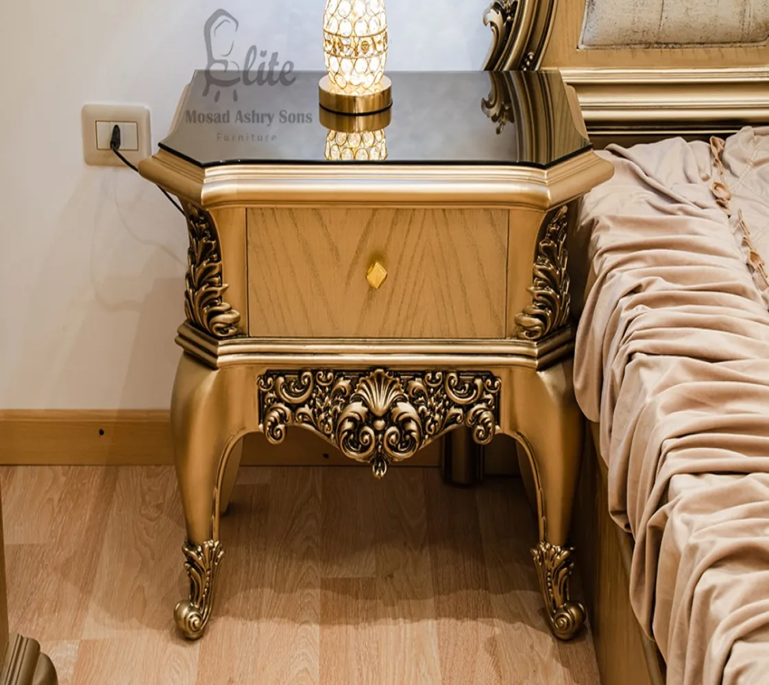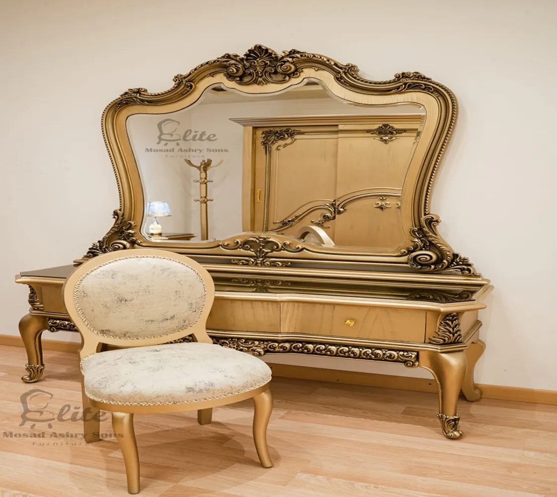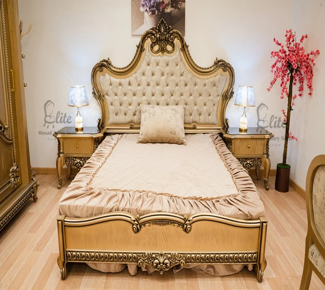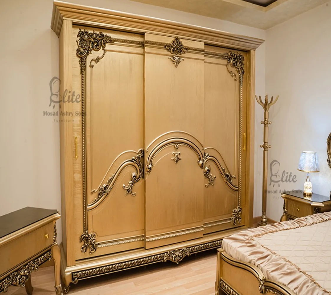 غرفة نوم كلاسيك غرفة مكونة من سرير دولاب 2 كمود تسريحة مع حامل ملابس غرفة مصنعة من الخشب الطبيعى بطابع كلاسيكى