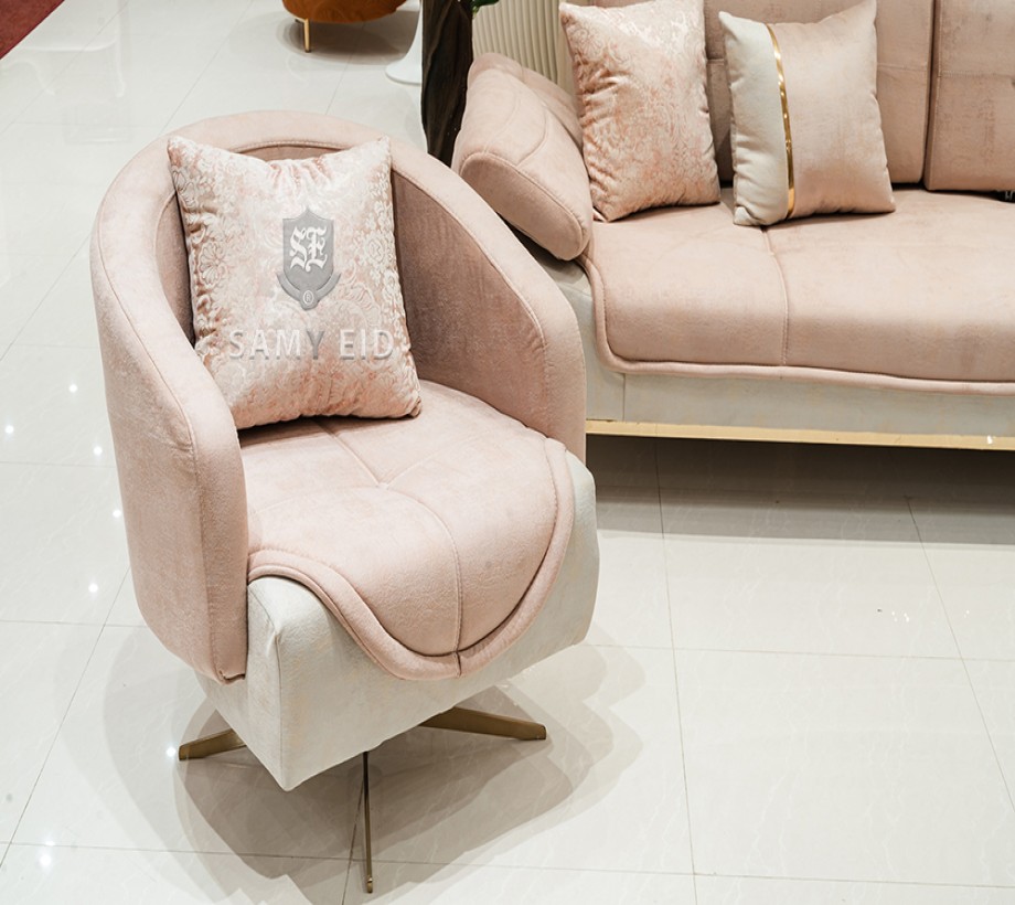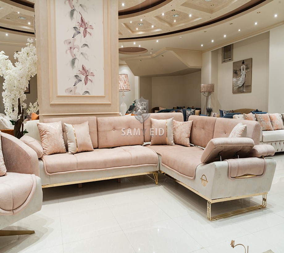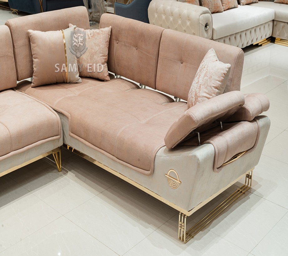 غرفة مكونة من ركنة مودرن مع كنبة فوتيه بمزيج من الستيل غرفة مصنعة من الخشب الطبيعى وقماش قطيفة مع مزيج من الستيل بطابع عصرى
