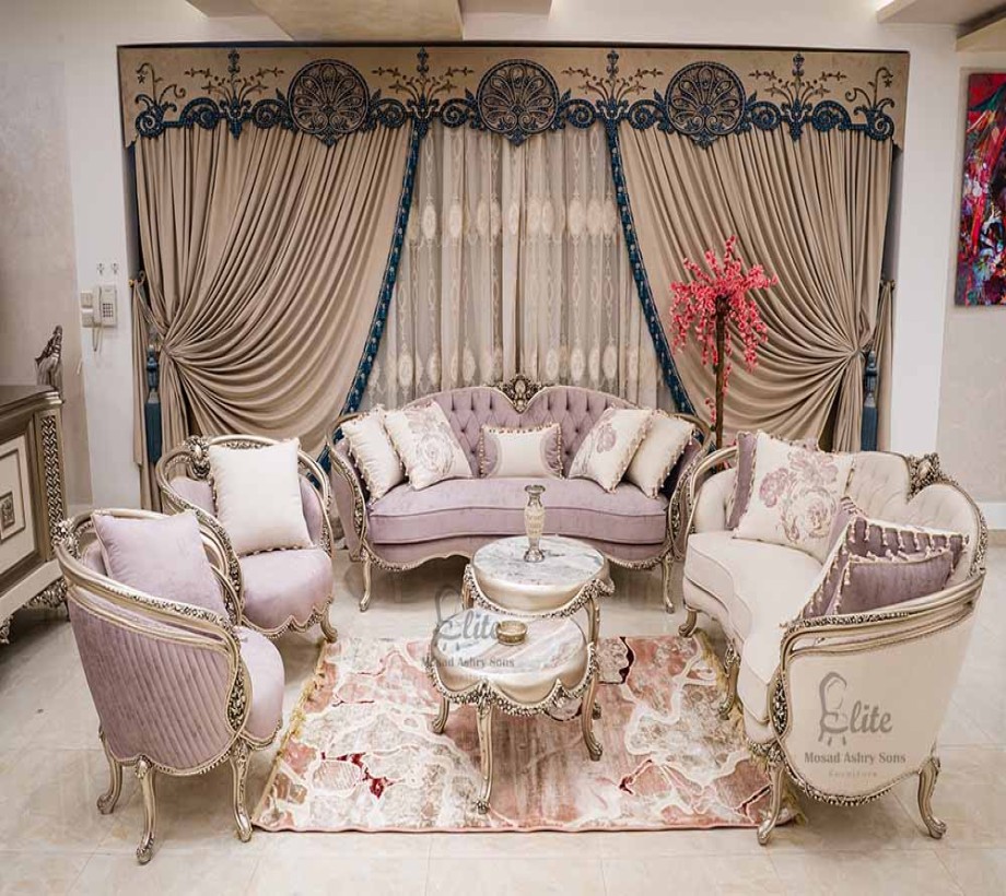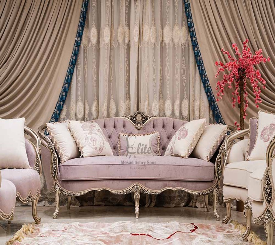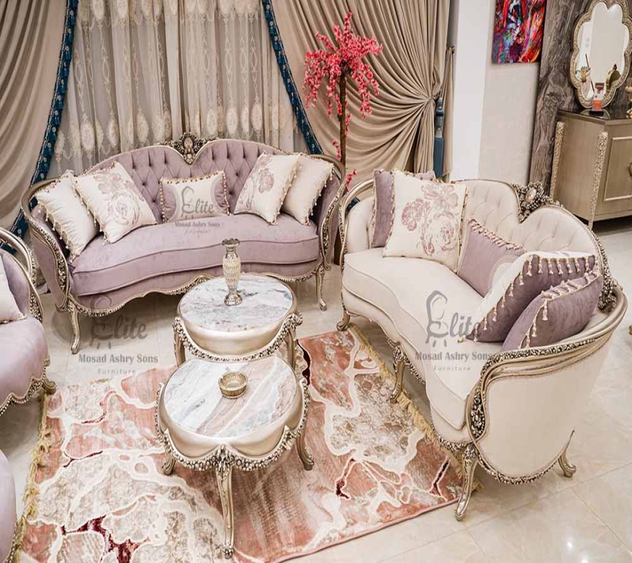 صالون نيو كلاسيك مكون من 2 كنبه و2 فوتيه وترابيزه ثنائيه