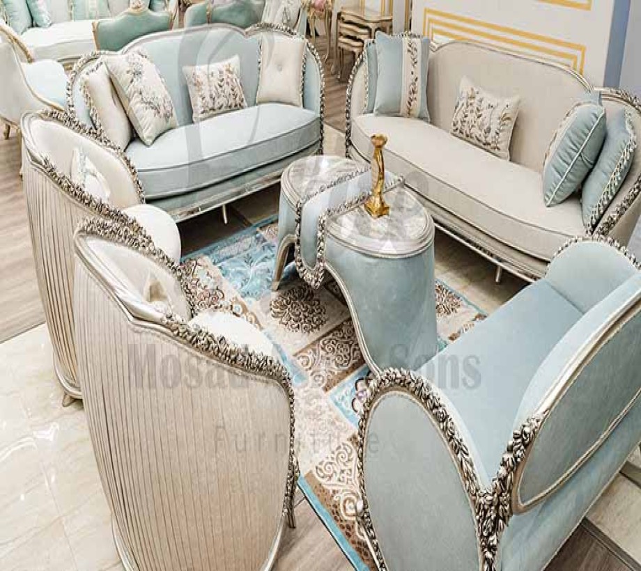 مكون من 2 كنبه و2 فوتيه وبانكيت وترابيزه من الخشب الطبيعي