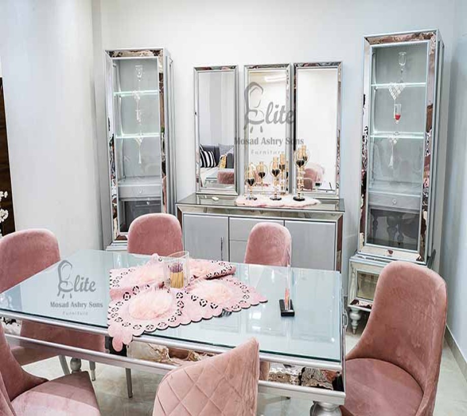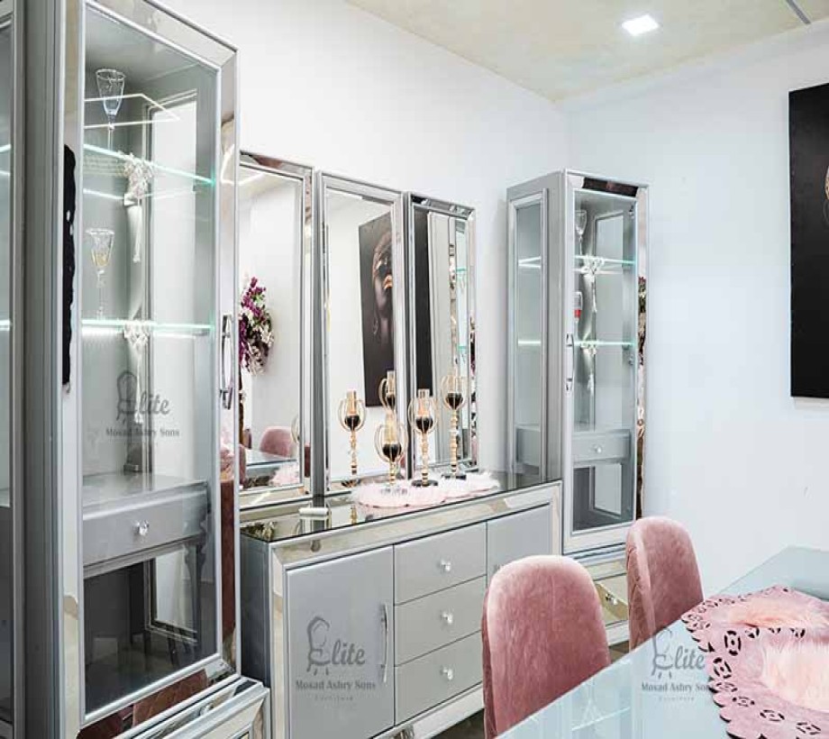 مكونه من ترابيزه و6 كراسي مع بوفيه و 2 وحده عرض خشبيه