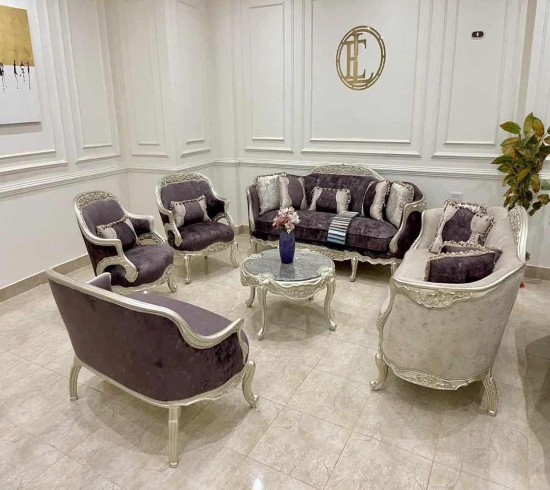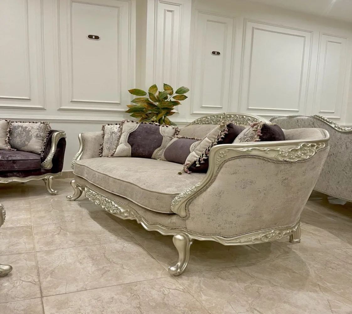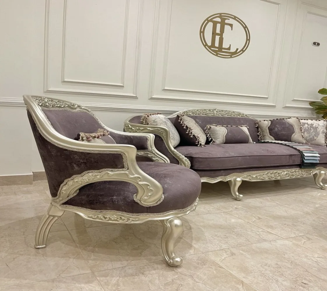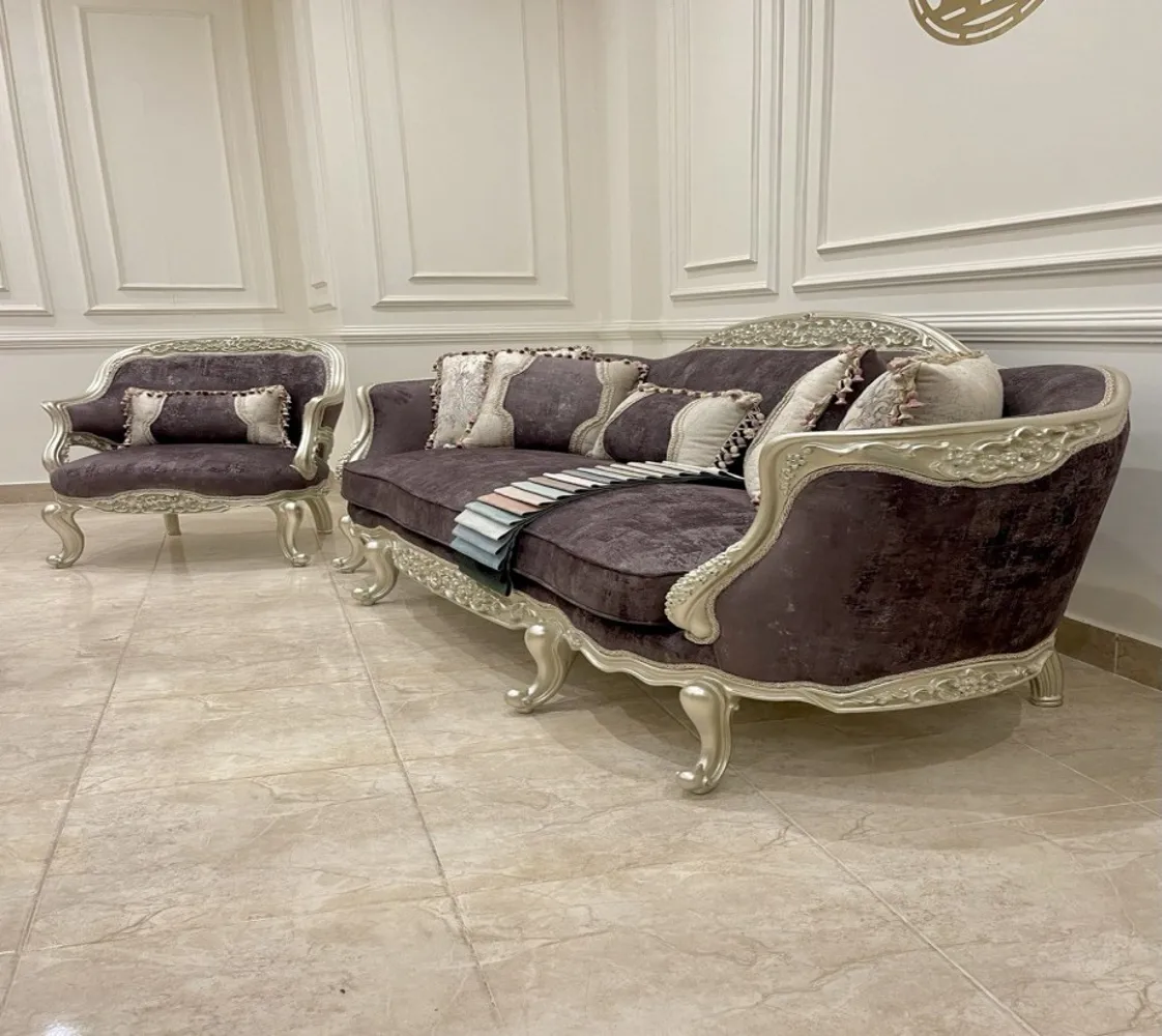 مكون من 2 كنبه و2 فوتيه وبانكيت و ترابيزه من الخشب الطبيعي