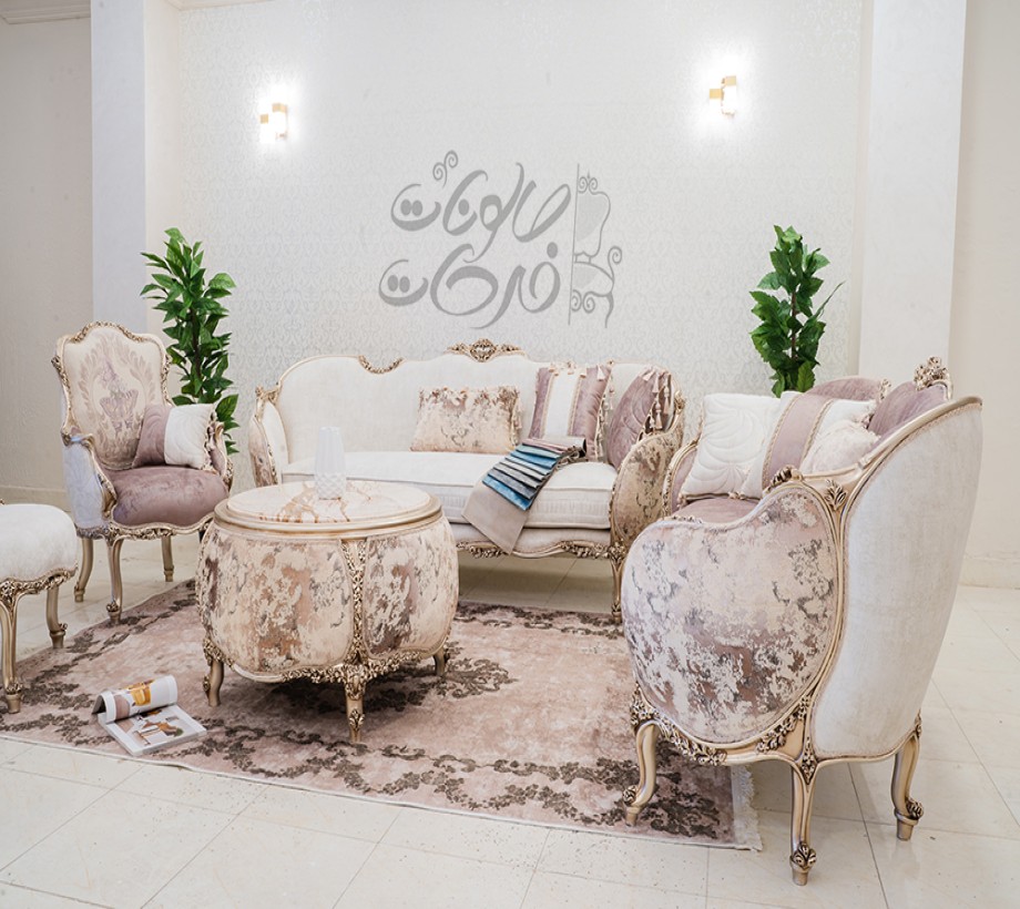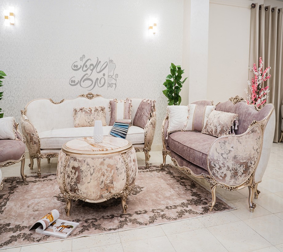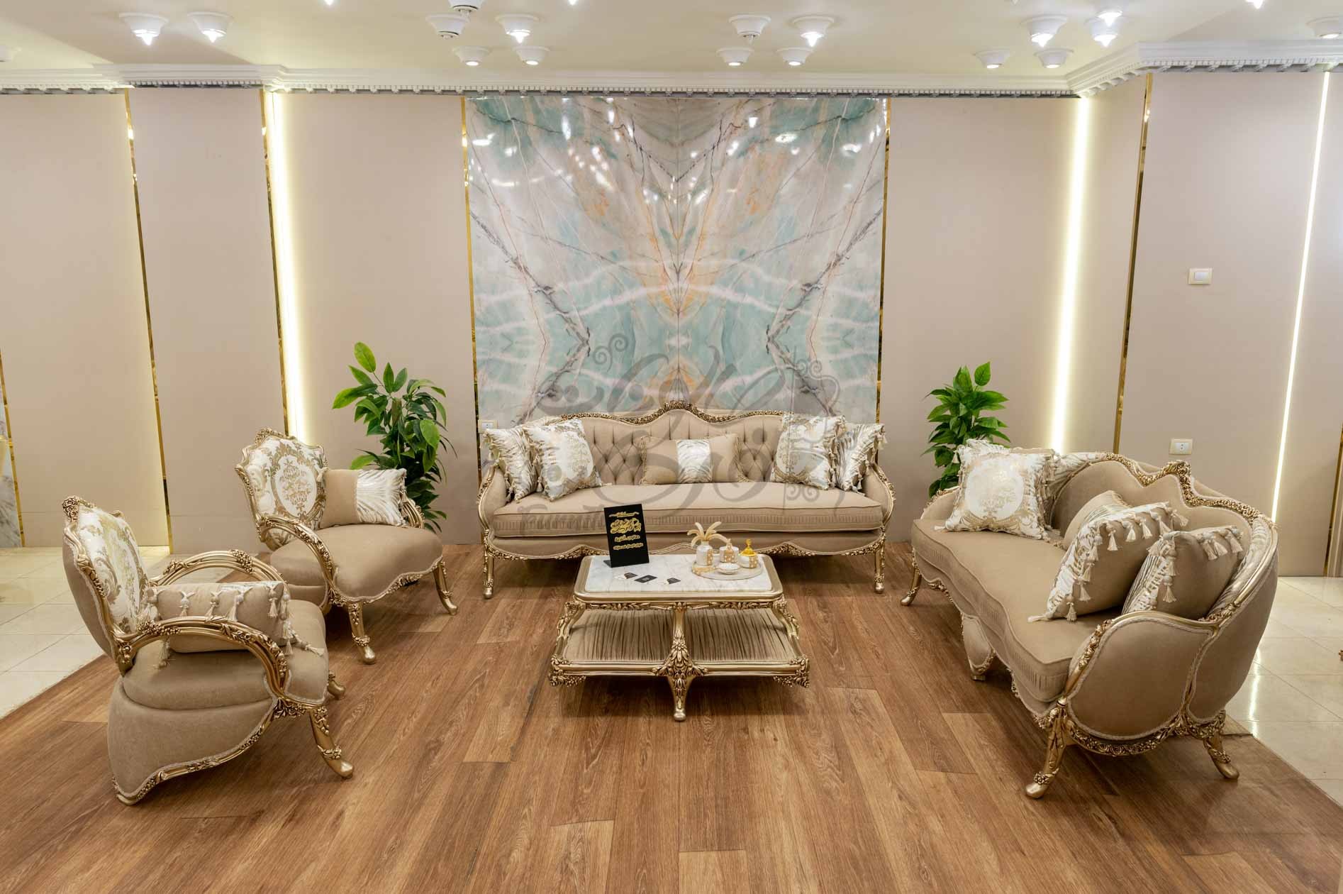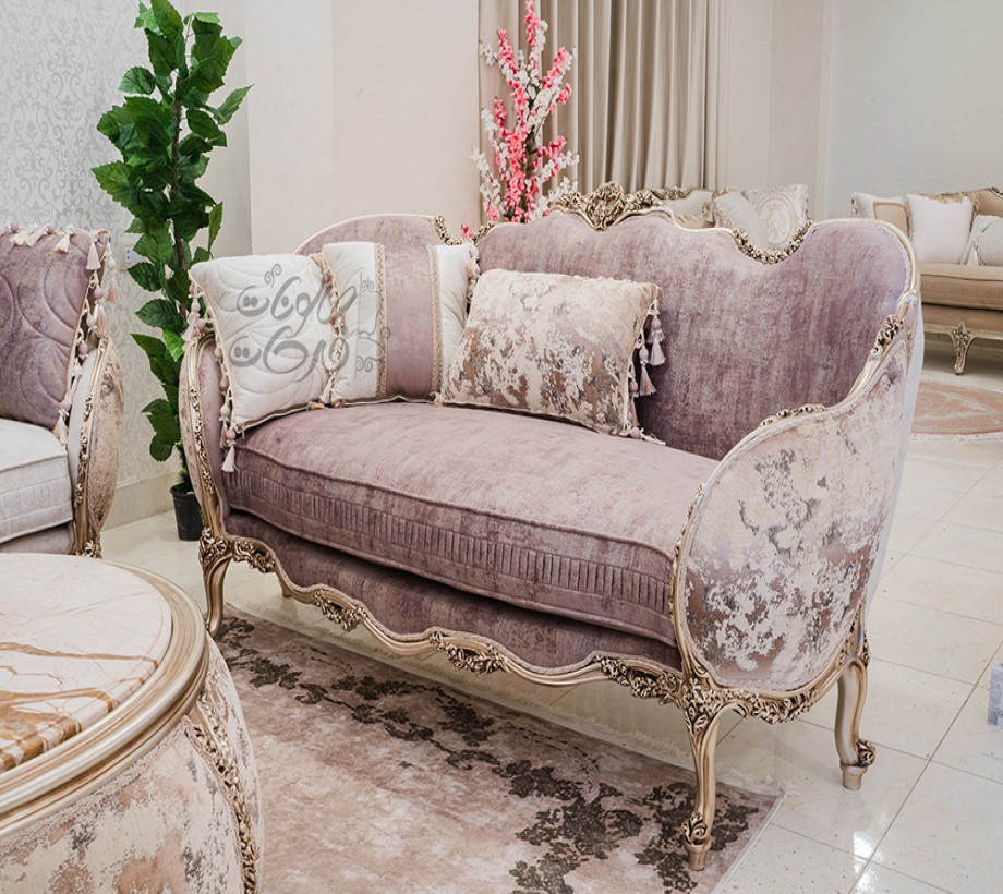 صالون مكون من كنبه كبيره 3 مقعد وكنبه صغيره 2 مقعد و 2 فوتيه وبانكيت و ترابيزه رخام صالون مصنع من الخشب الزان الاحمر الرومانى بطابع كلاسيكى مميز