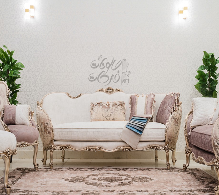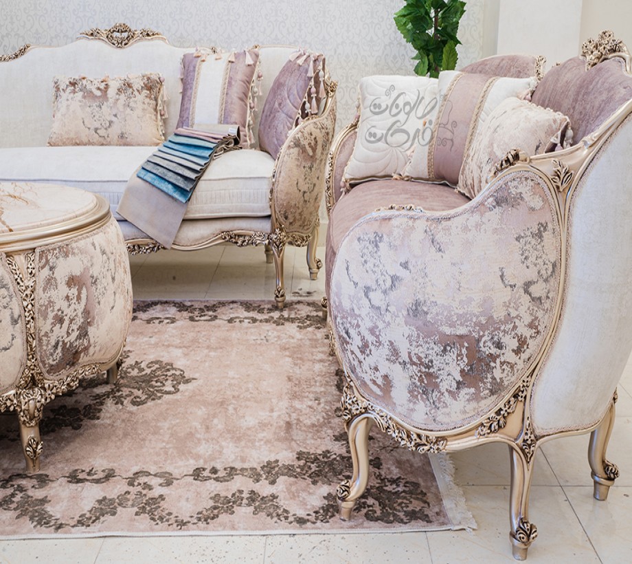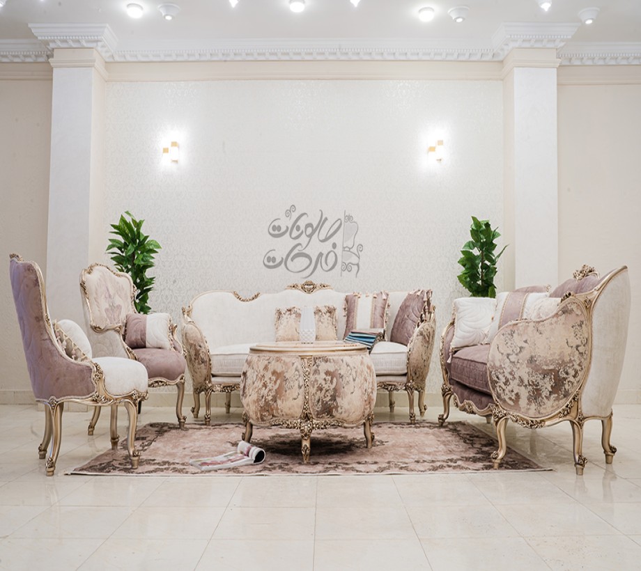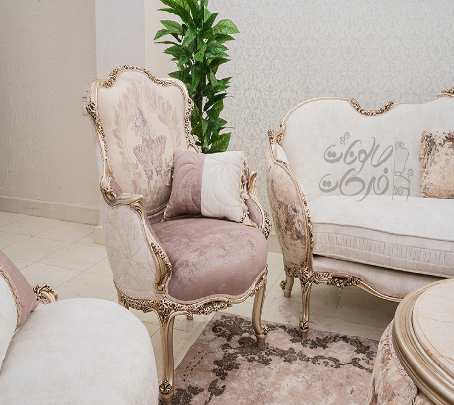 صالون مكون من كنبه كبيره 3 مقعد وكنبه صغيره 2 مقعد و 2 فوتيه وبانكيت و ترابيزه رخام صالون مصنع من الخشب الزان الاحمر الرومانى بطابع كلاسيكى مميز