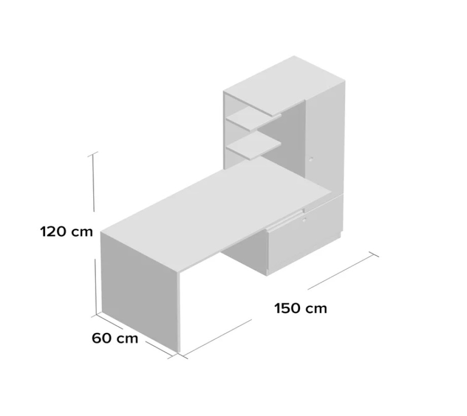 الأبعاد (عرض 150 سم) (عمق 60 سم) (ارتفاع 120 سم)